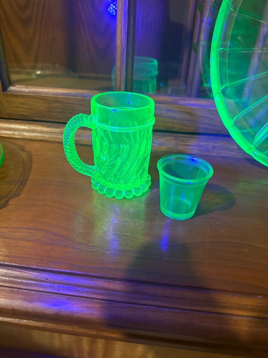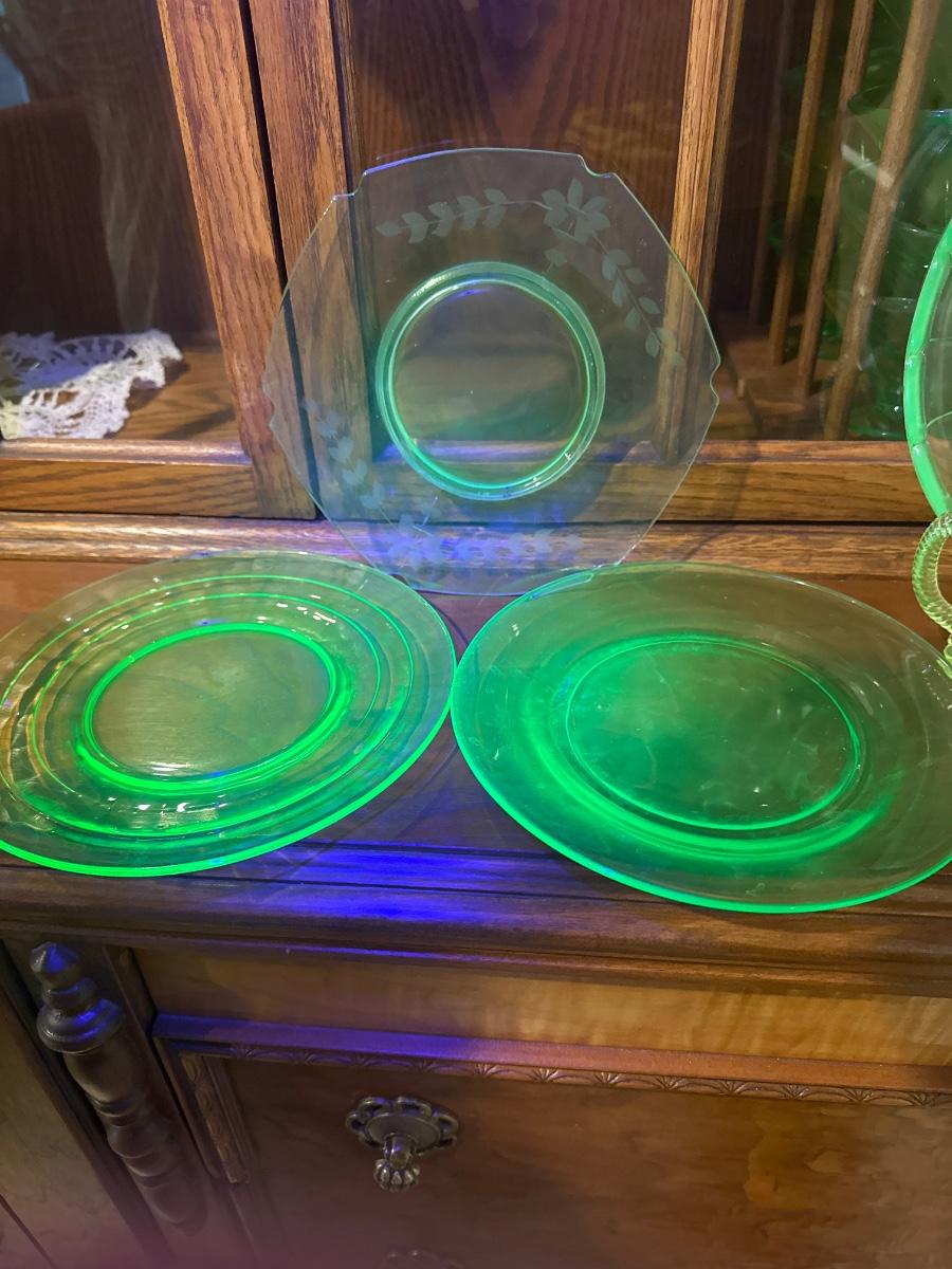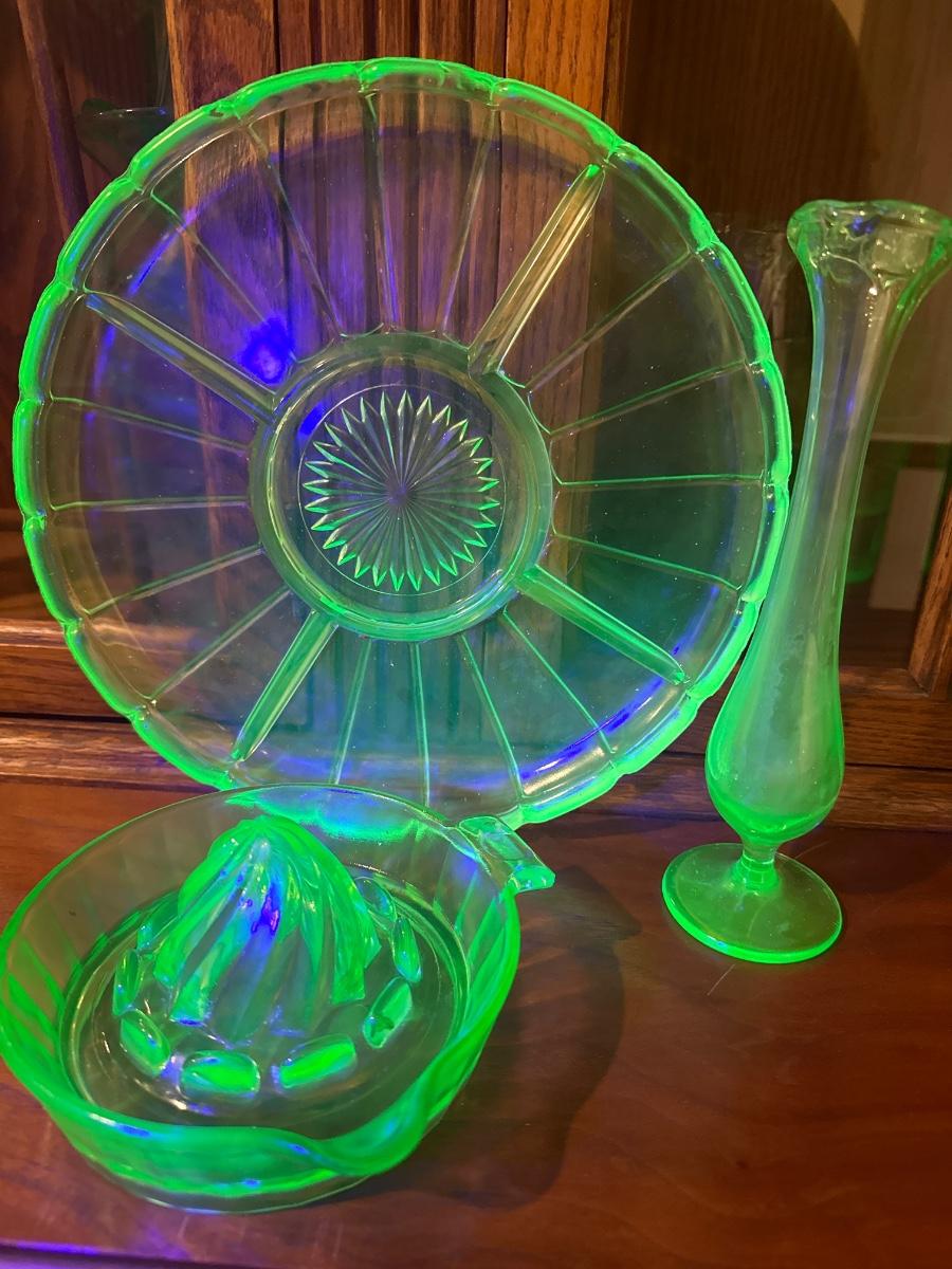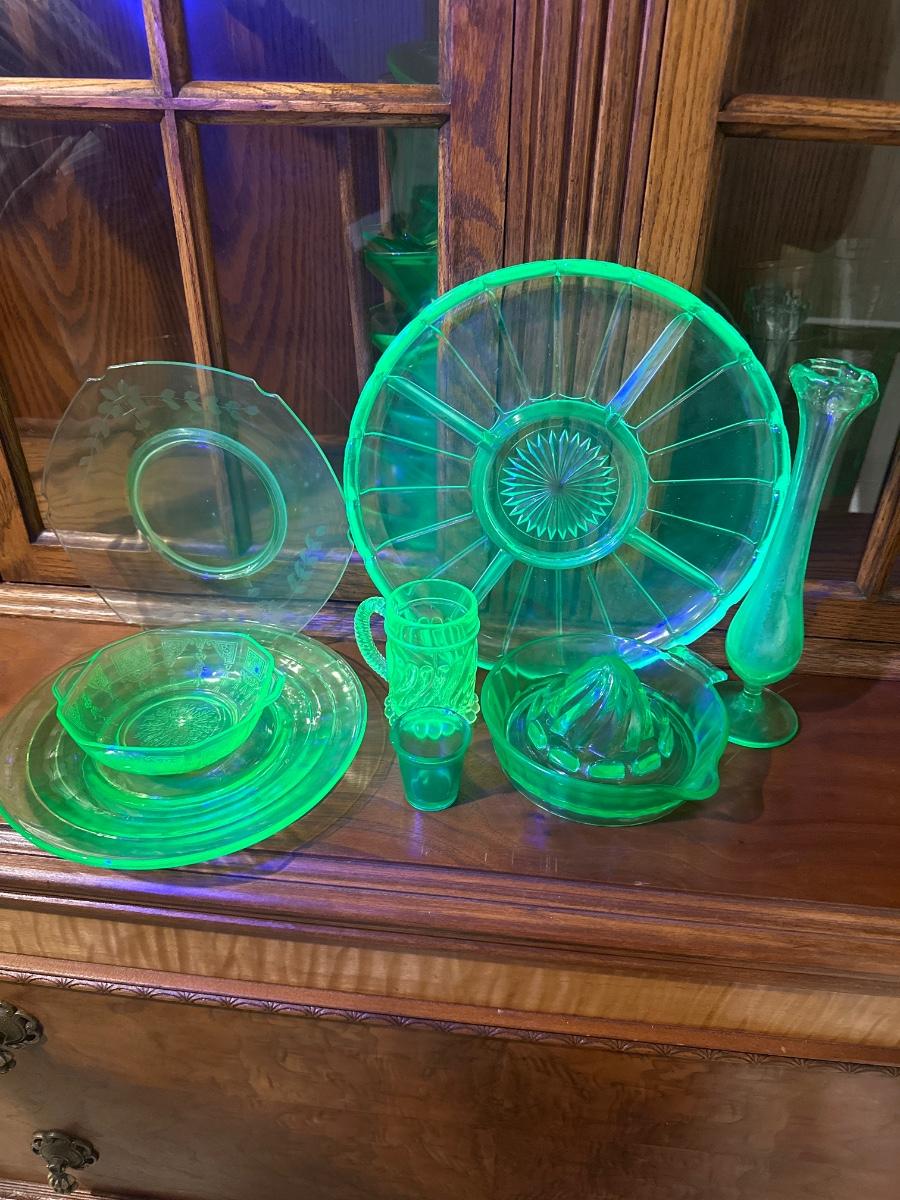 A mixture of cute mismatched items! Includes 3 plates, shot glass, little snowflake bowl, juicer, flower holder, serving platter, and mini mug