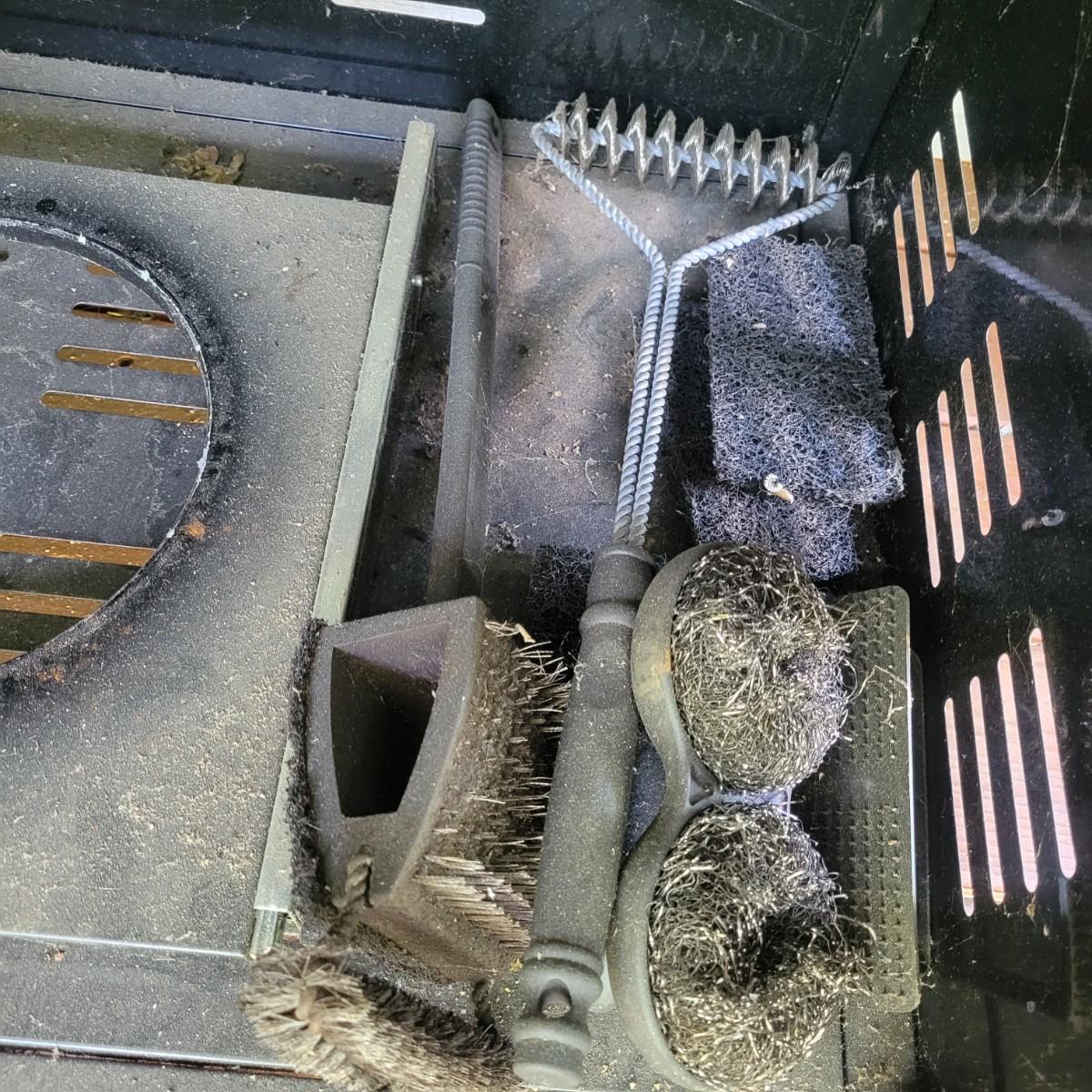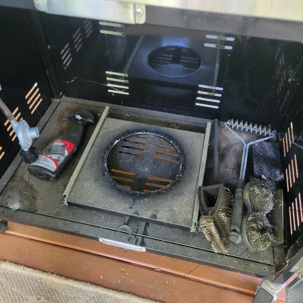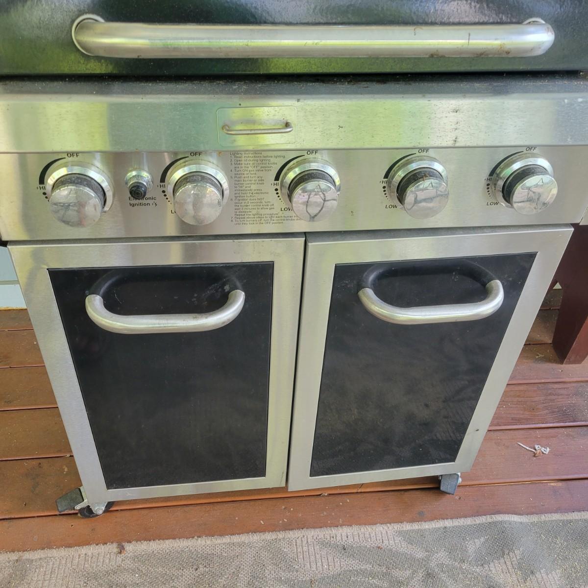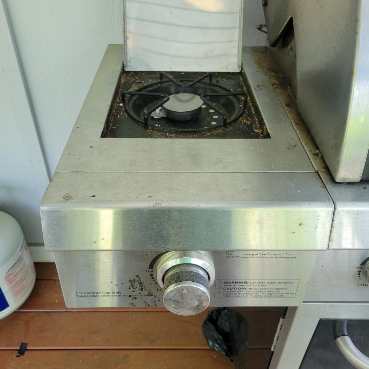 A Rankam Group five burner grill that includes a side burner. This grill comes with a grill cover, cleaning accessories, a set of soft skewers and a fish basket. The grill measures approximately 57.5" x 24" x 50" and was not tested. Local pickup only. Winning bidder must bring assistance to help move and load this item due to its weight and/or size.