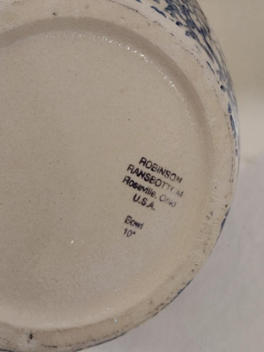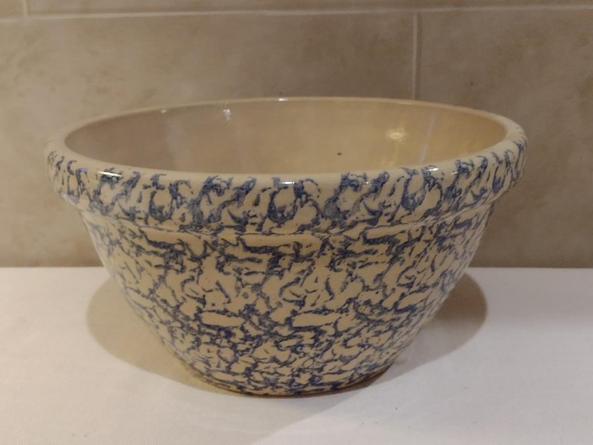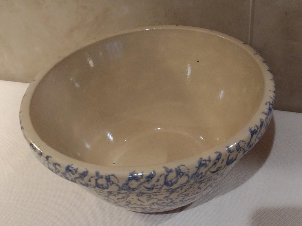 Large Robinson Ransbottom Glazed Pottery Bowl with Sponge Finish