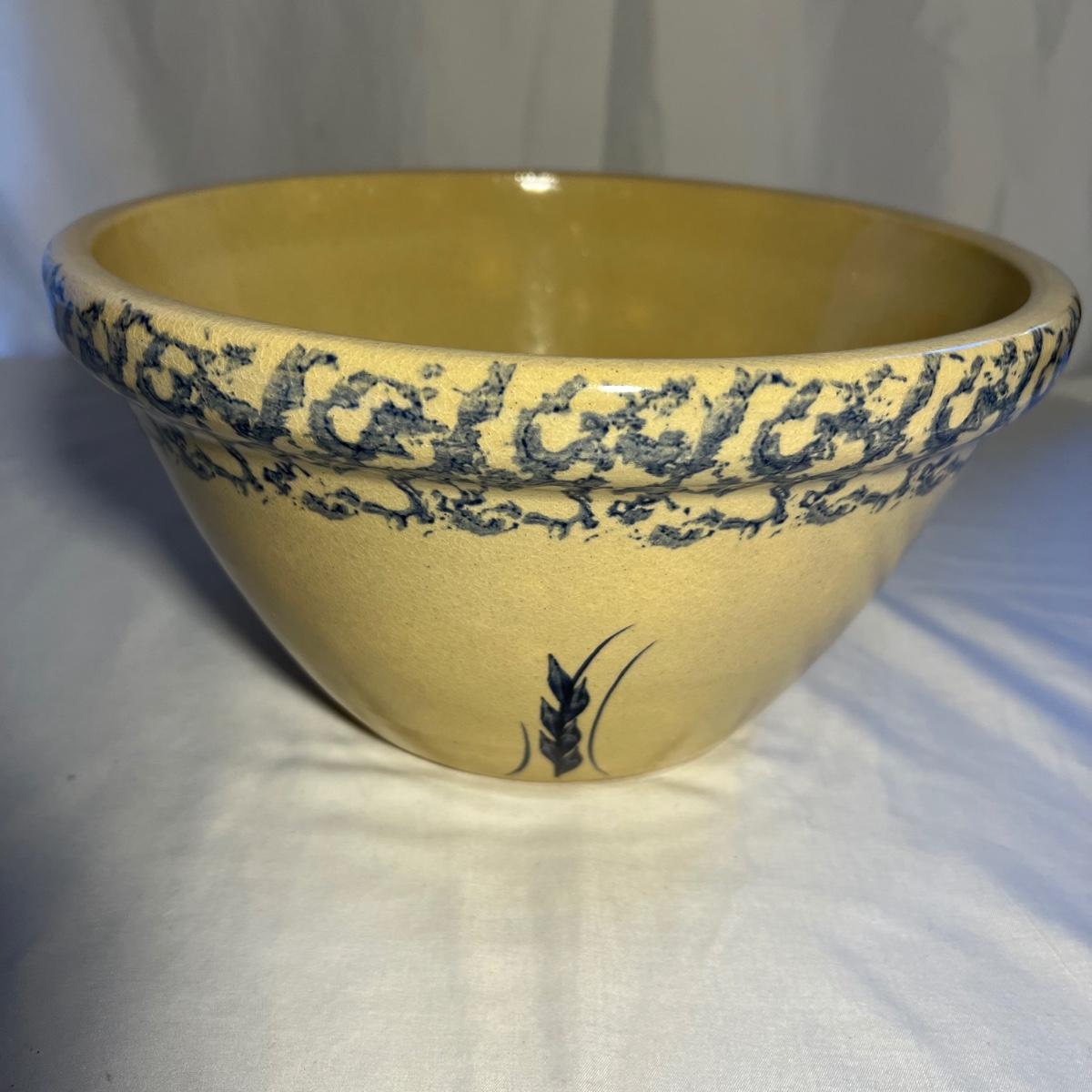 This large ceramic mixing bowl from Robinson Ransbottom Pottery has a wheat motif. Measures 10” x 5”H.