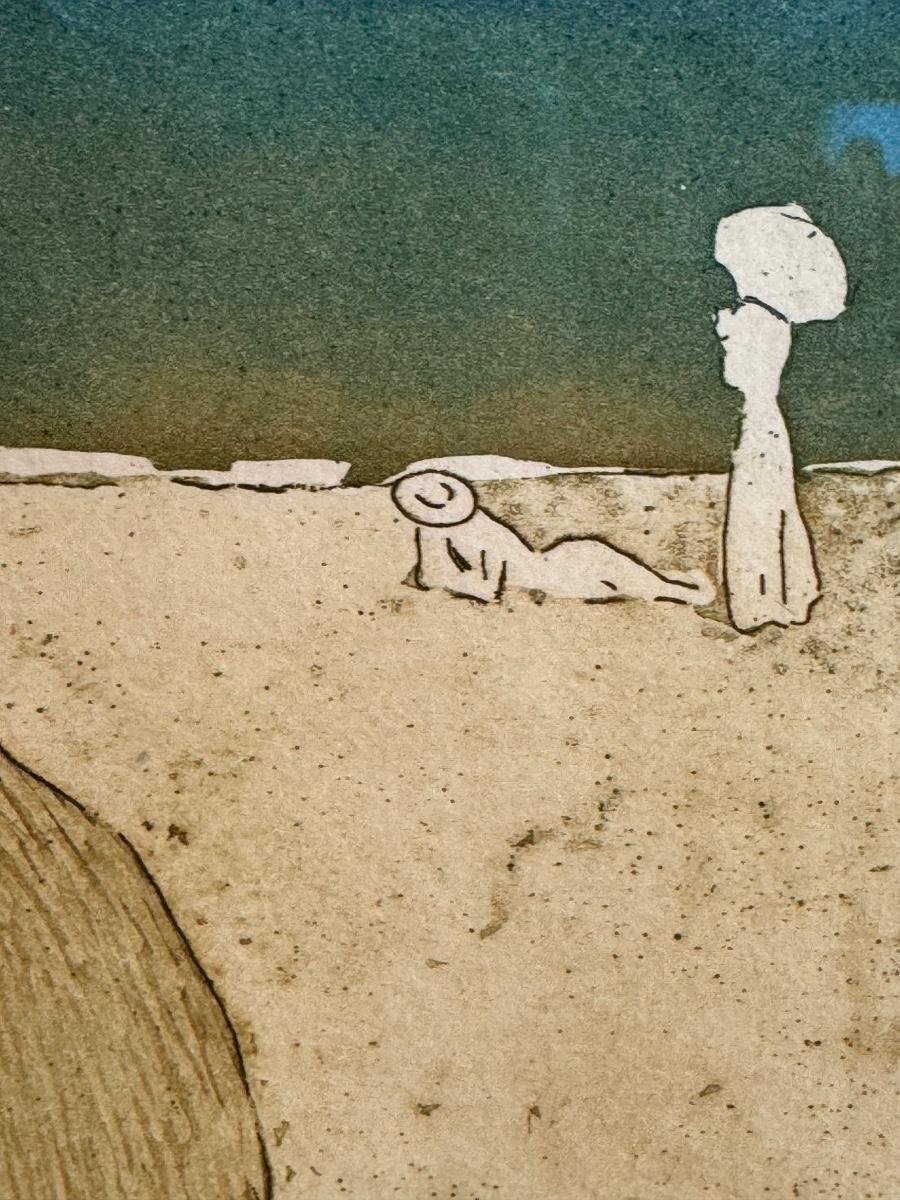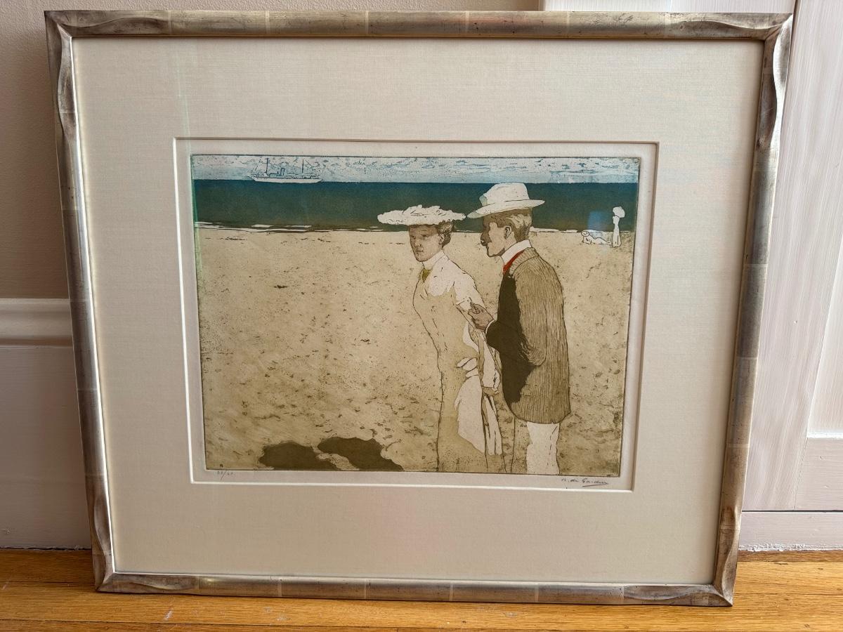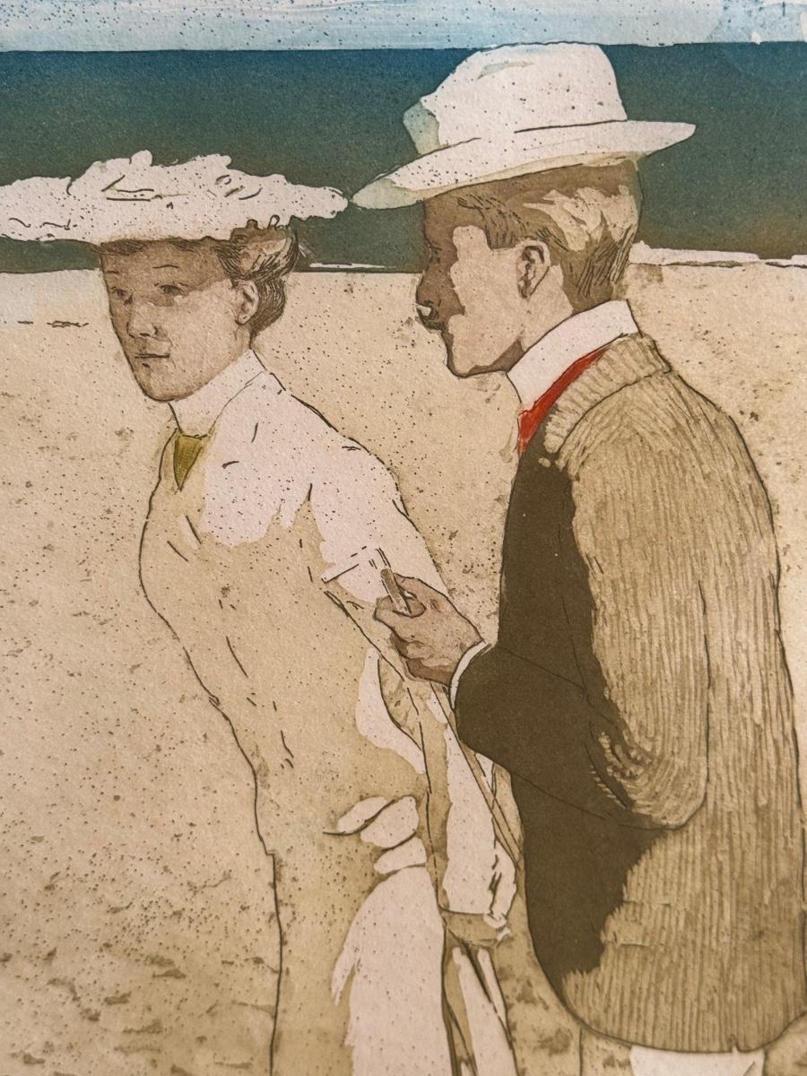 Raoul Du Gardier, Promenade sur le Sable, 1904, color etching and aquatint. Signed and numbered 25/60