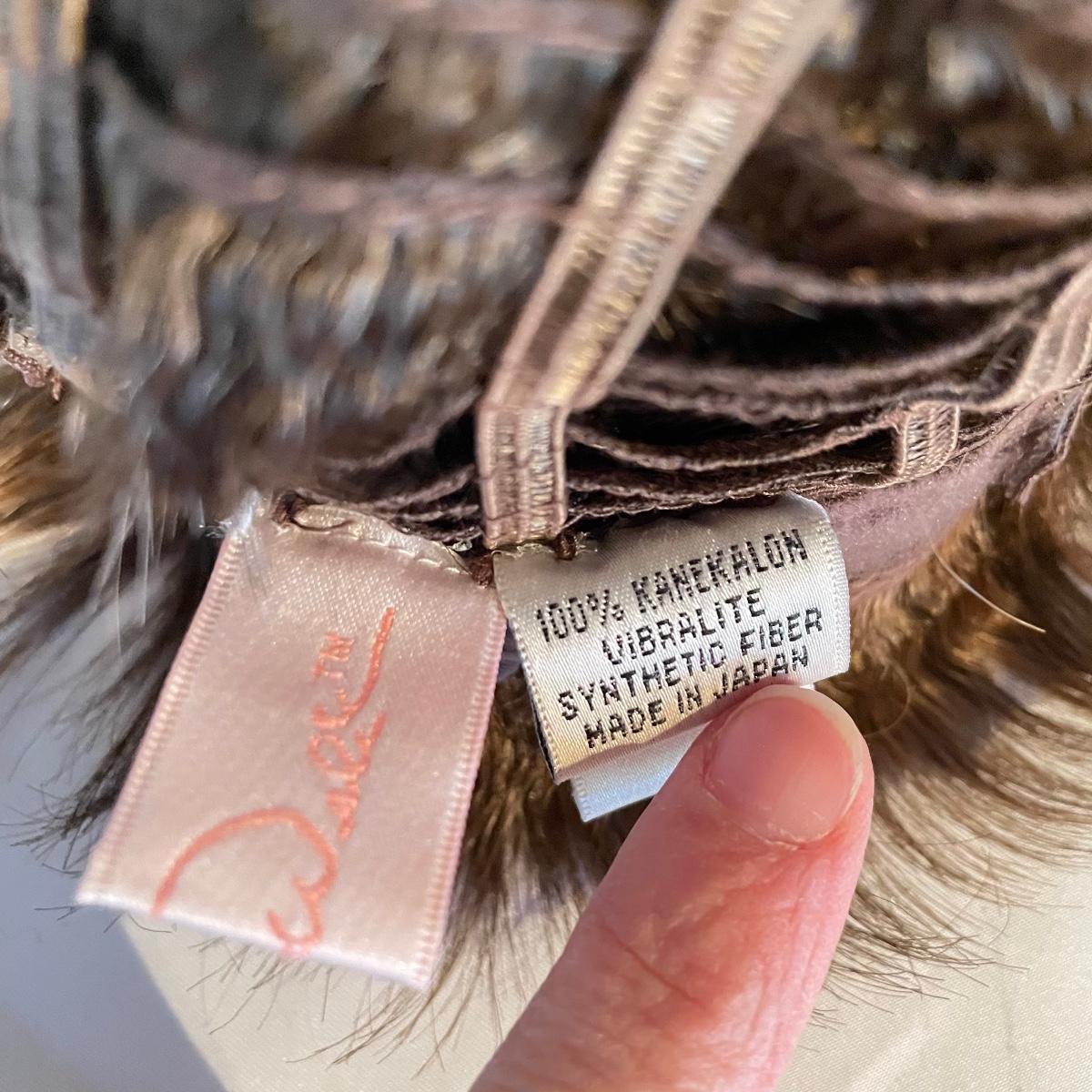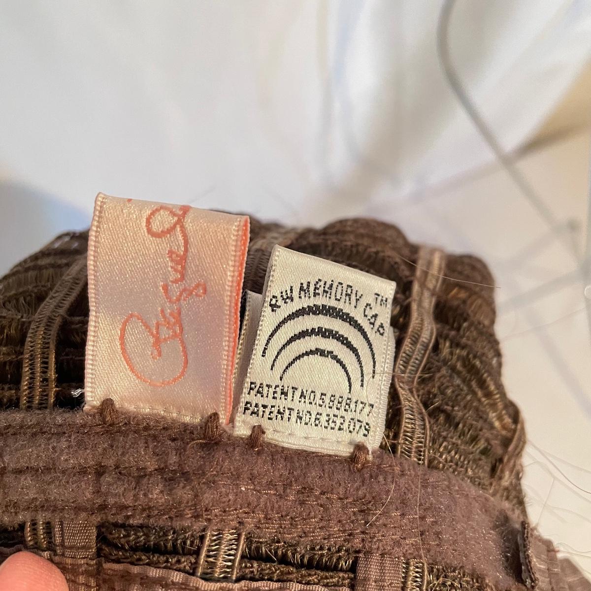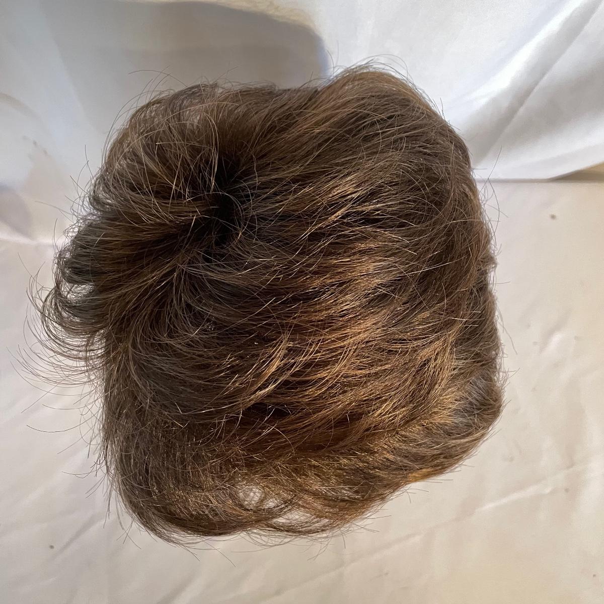 Deep chocolate brown wig by the Raquel Welch Signature Collection with metal wig stand. This is a short hair style, hairs seem to vary between 3” and 4”. The very last image shows the truest color, although the fibers catch light extremely well. Shipping available.