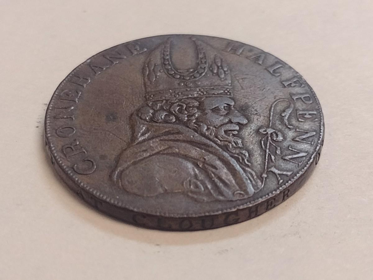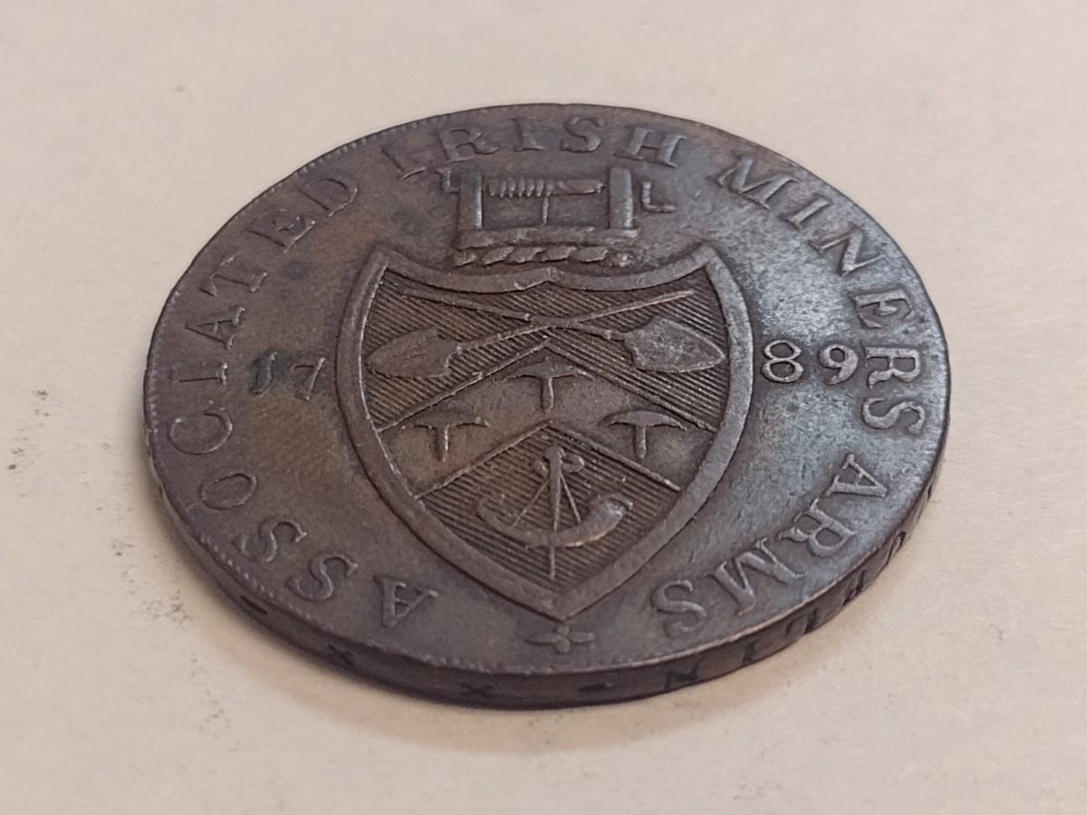 Rare 1789 Cronebane Irish Half Penny Associated Irish Miners Copper Token 'Payable at Clougher or Dublin' Inscribed on Edge (85)