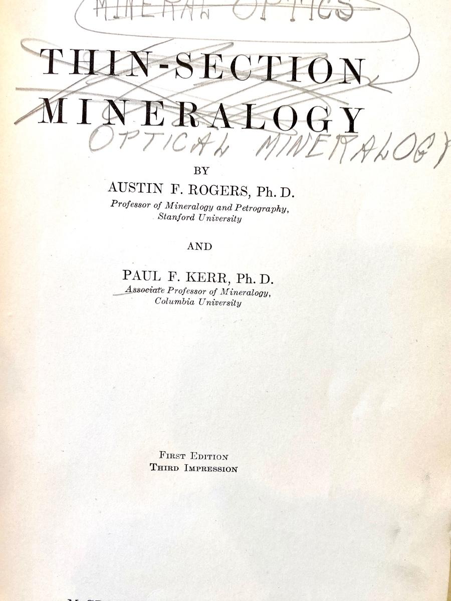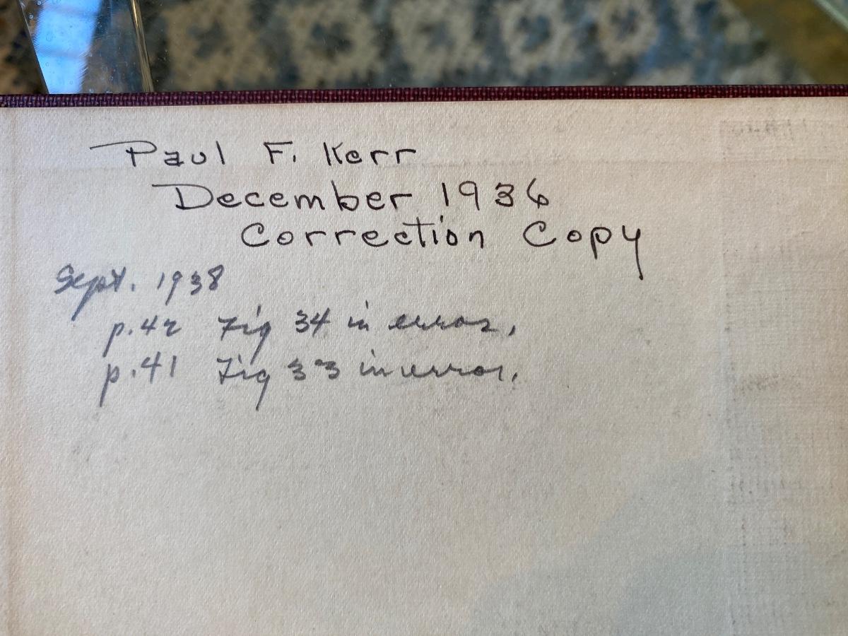 RARE 1936 Paul F. Kerr Signed Correction copy Thin-Section Mineralogy OPTICAL MINERALOGY