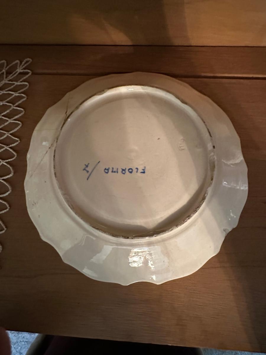 Rare 1950s Florita E & R Italy Pottery Large Serving Cake Plate