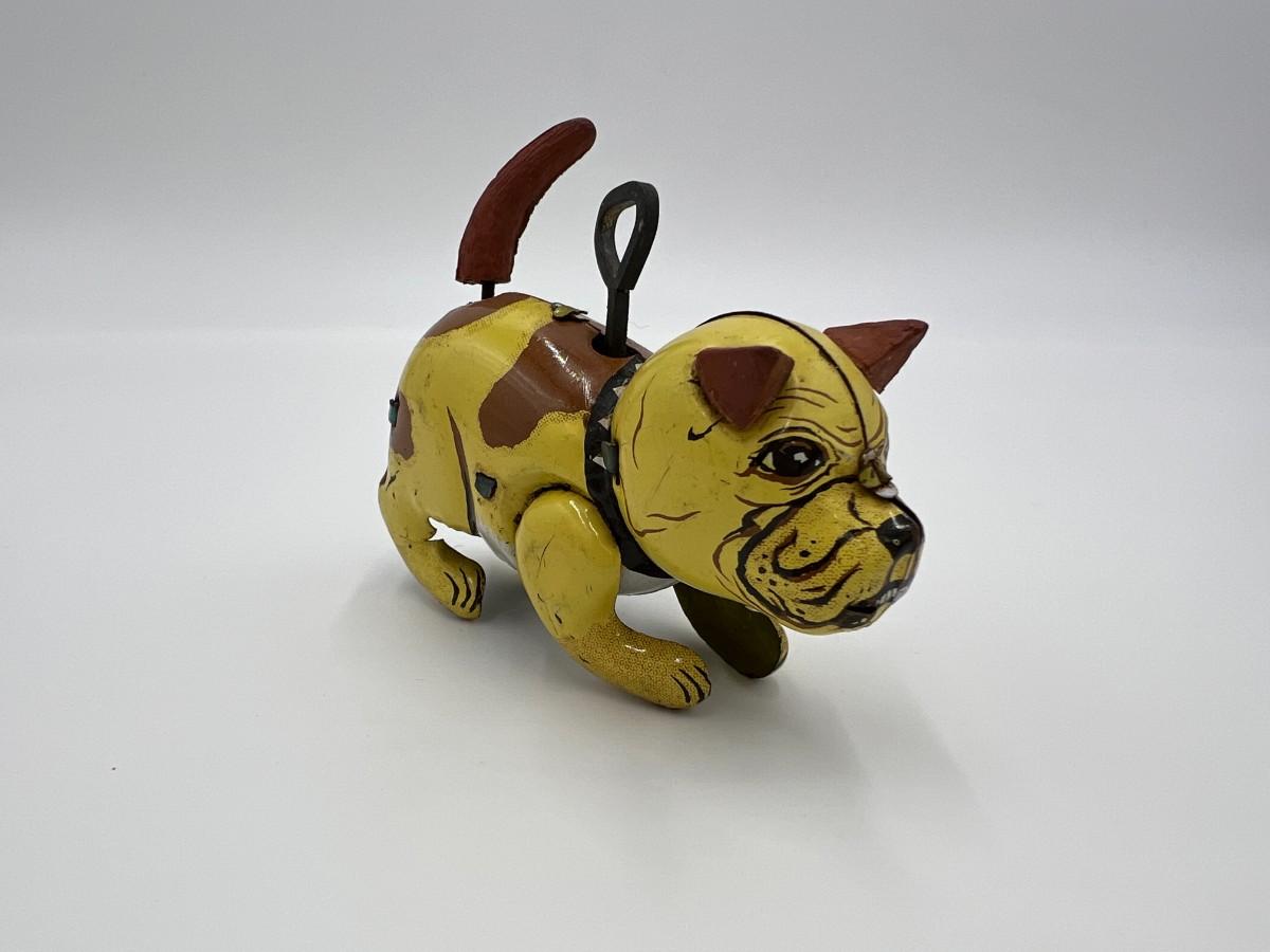 Rare 1950s Japan Wind Up Bulldog Tin Toy with Spinning Tail