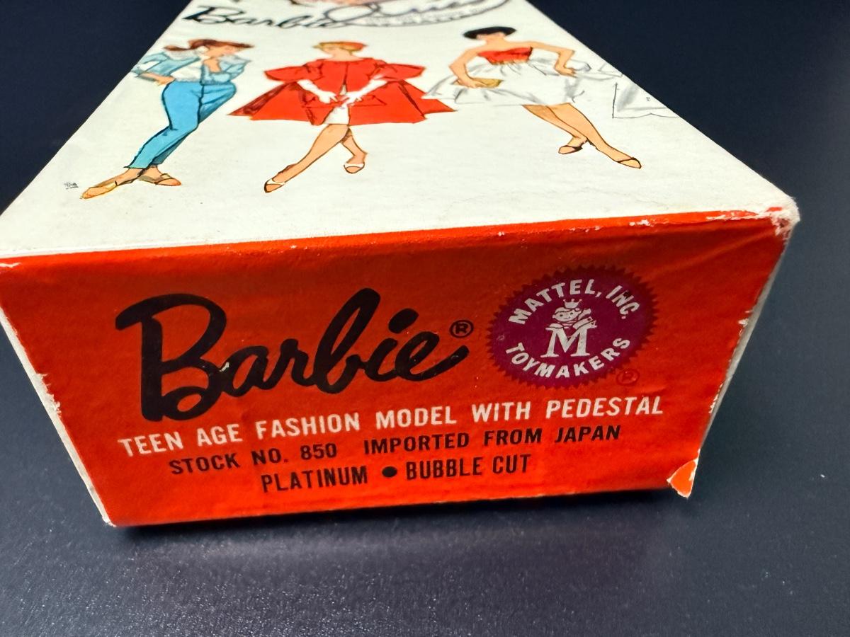 #850 Platinum Bubble Cut 1962 Vintage Barbie in box with pamphlet and tag.