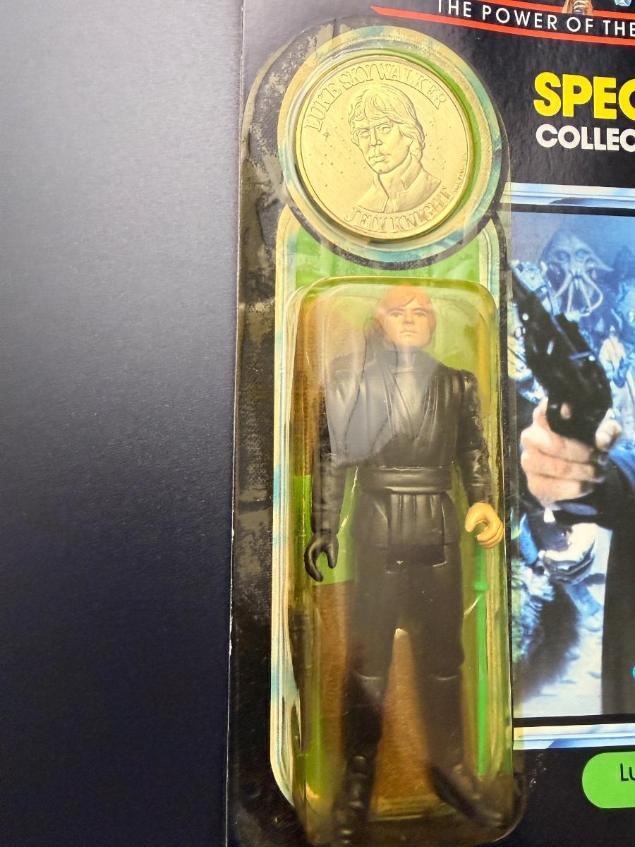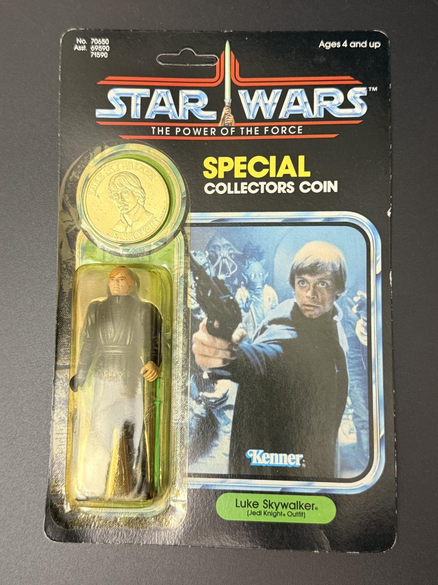 Original vintage 1984 Kenner Star Wars: The Power of the Force Luke Skywalker Jedi Knight outfit action figure in mint condition and sealed up from an estate with many vintage original Star Wars collectibles.