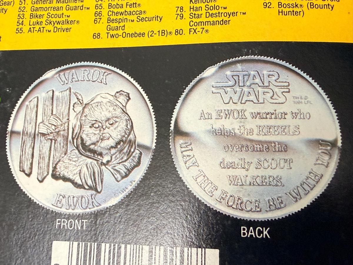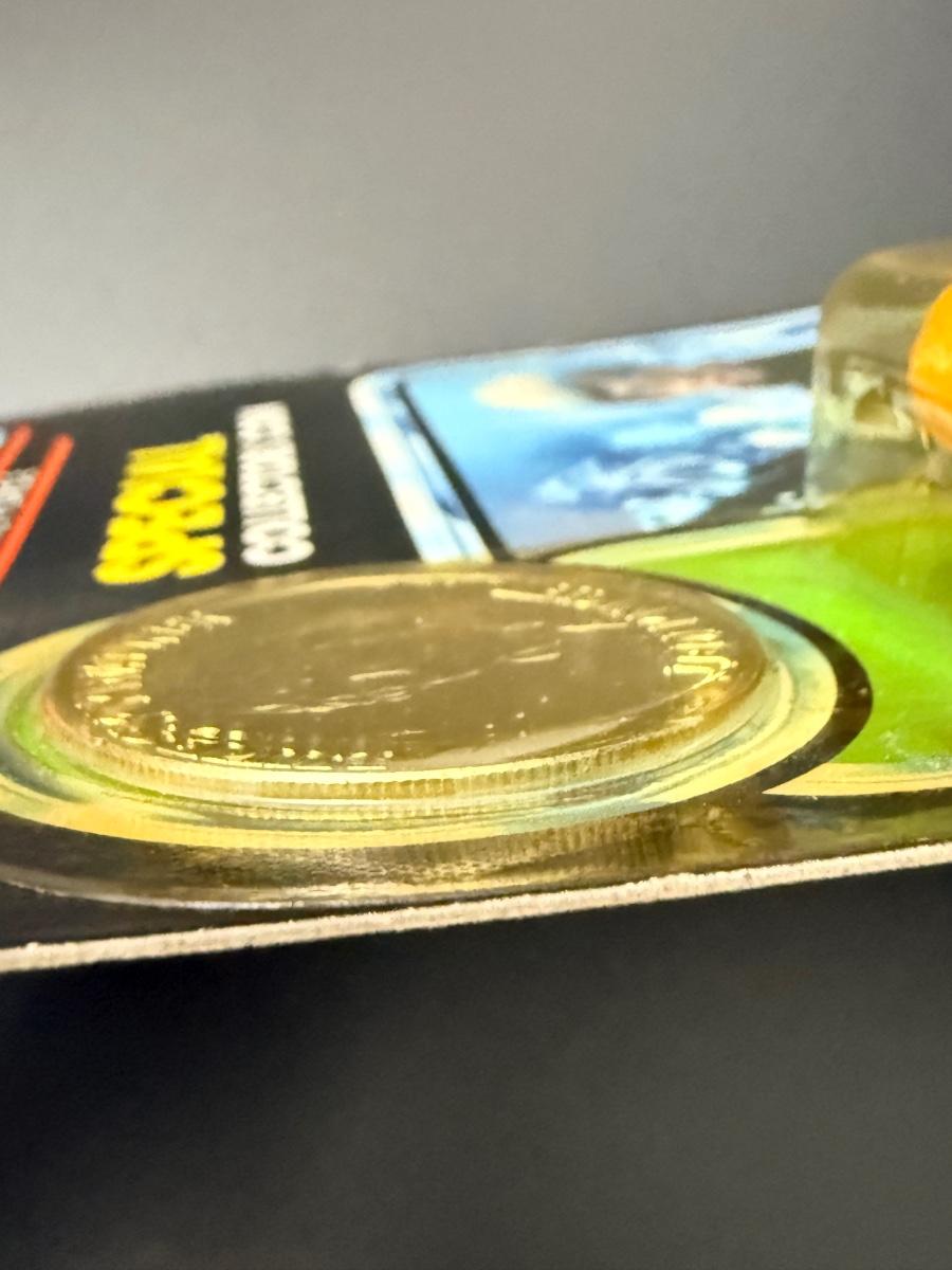 The figure displays well sealed on backing card with POTF coin! The blister bubble shows some age and discoloration but it's an unpunched card and was well stored since purchase.