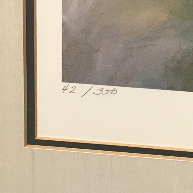 This lithograph is number 42/350. Overall in excellent condition free of scratches scuffs and dings. Including the frame, this measures 24“ x 20 1/2“.