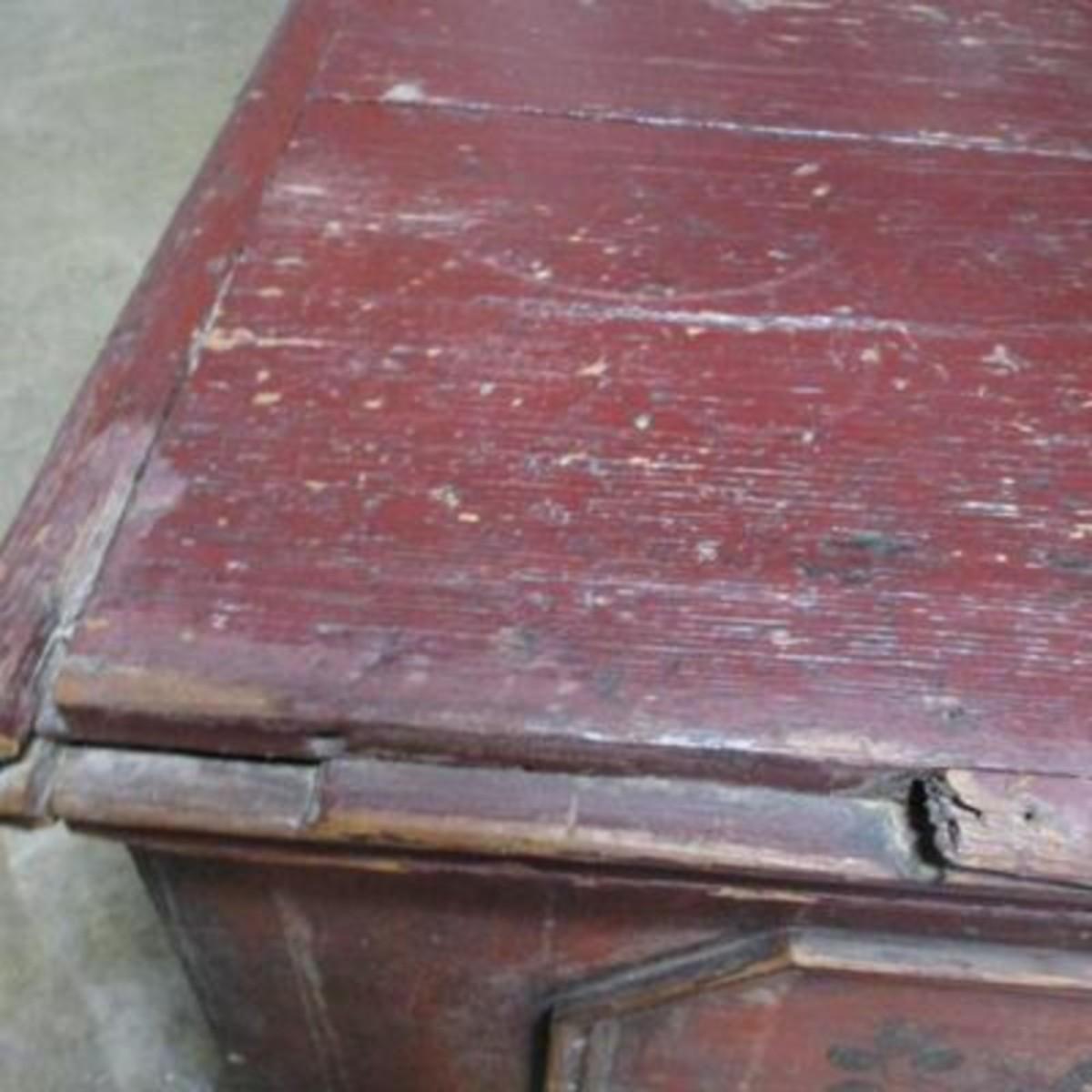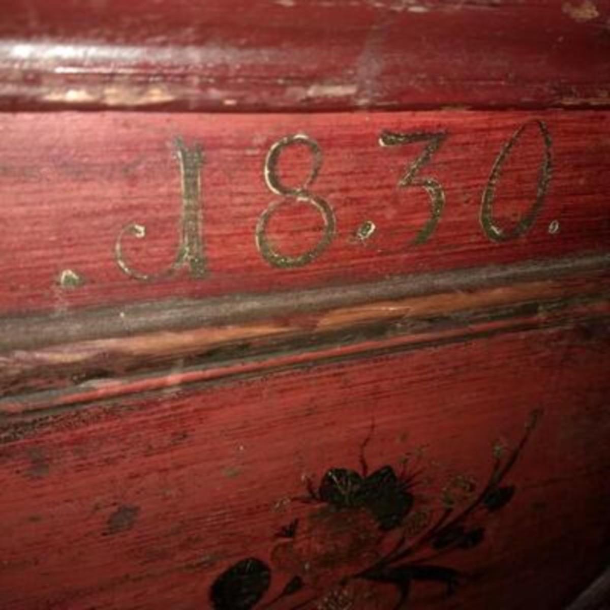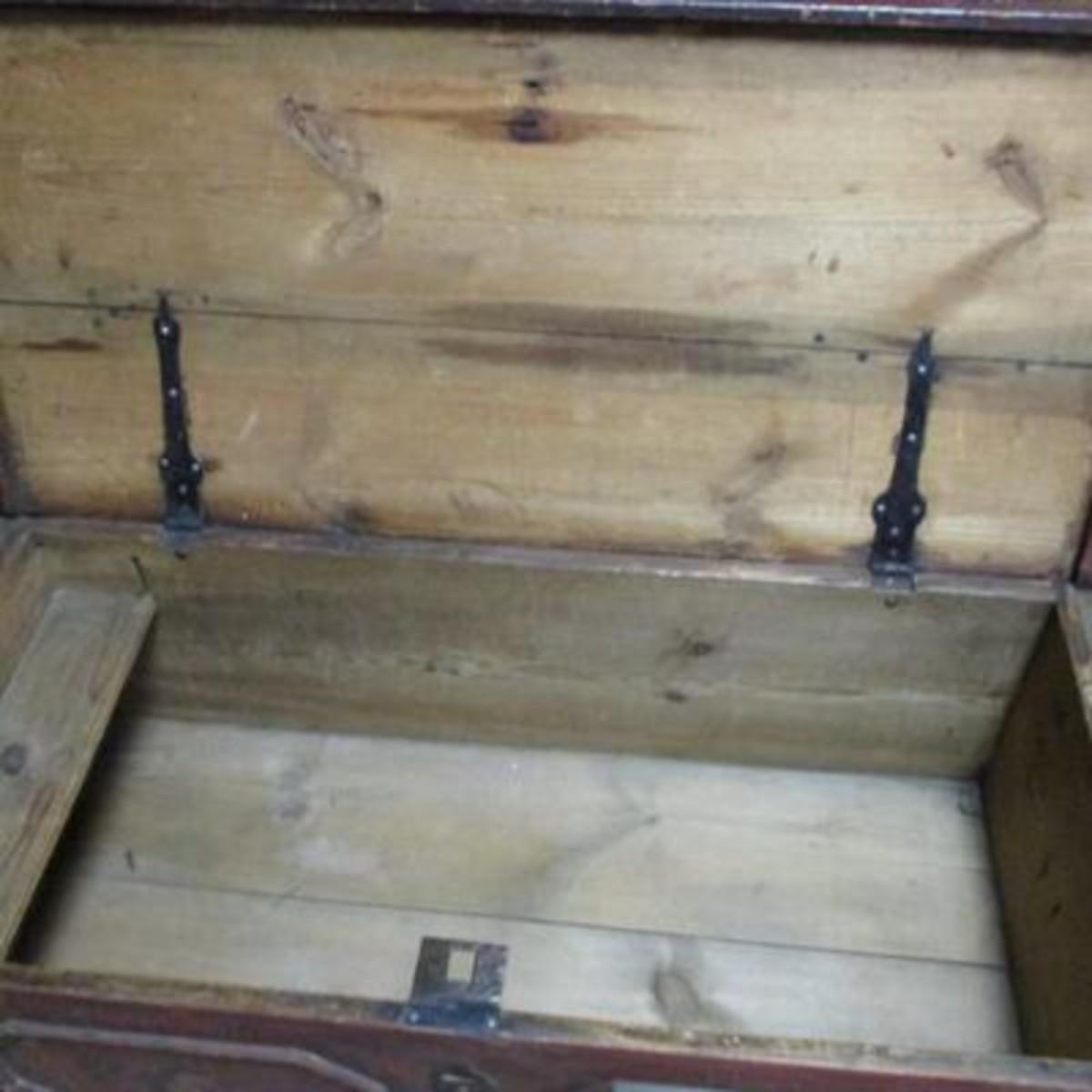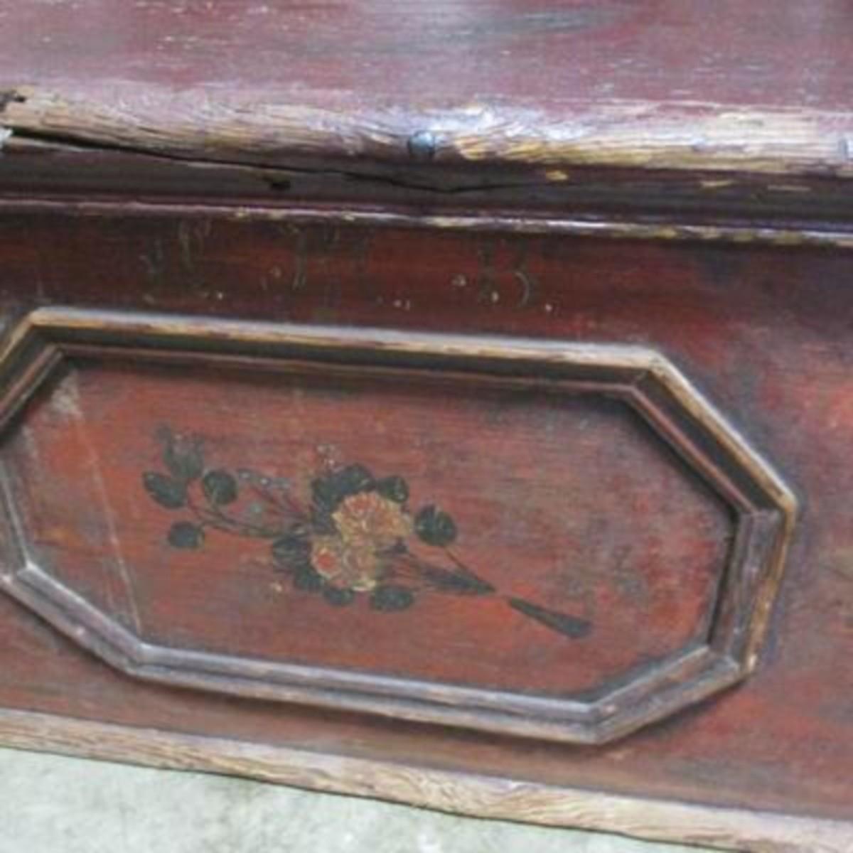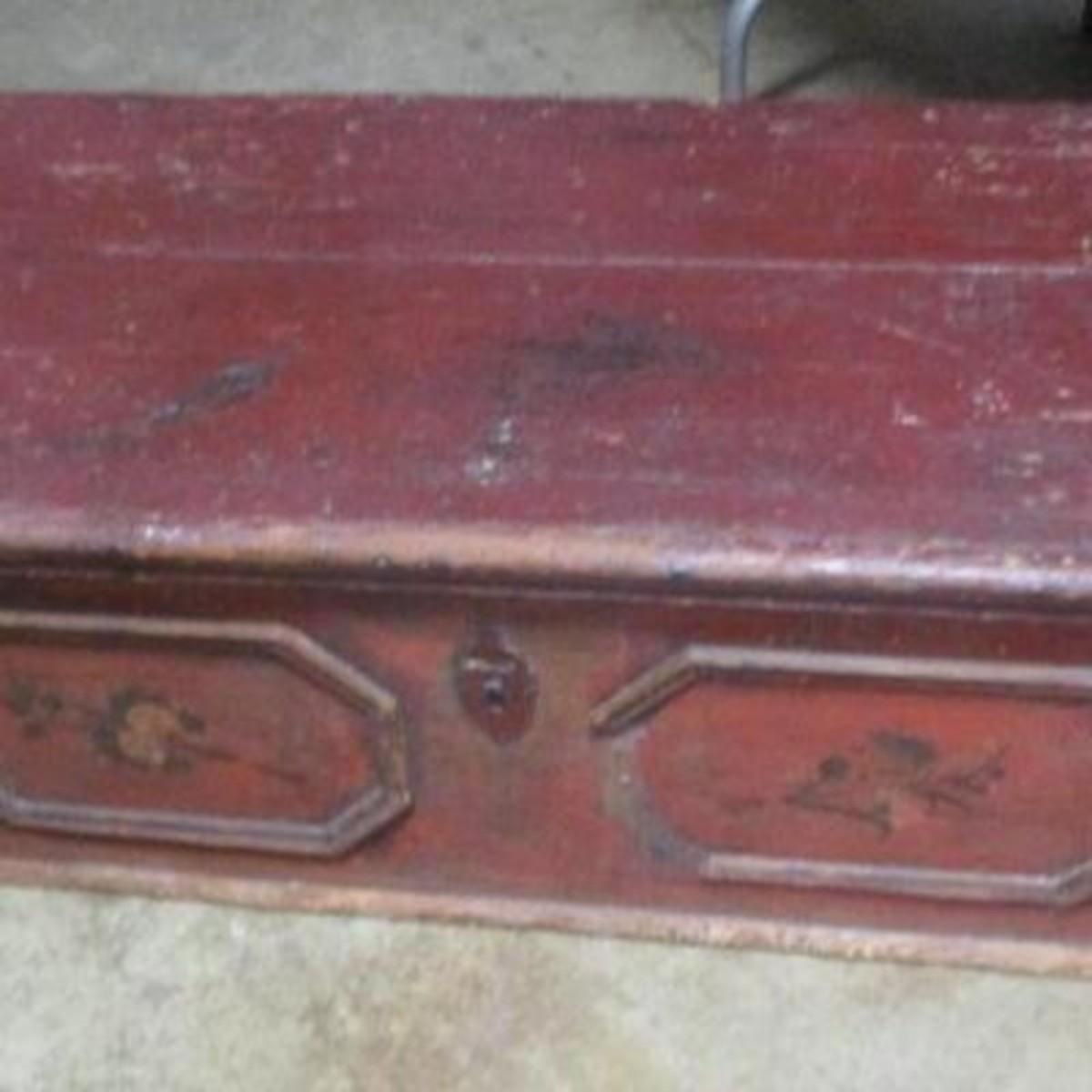 Rare! 19th Century 1820's Bride's Dower Chest Storage Chest with Wrought Iron Hinges Ox Blood Paint Hand Painted Panels