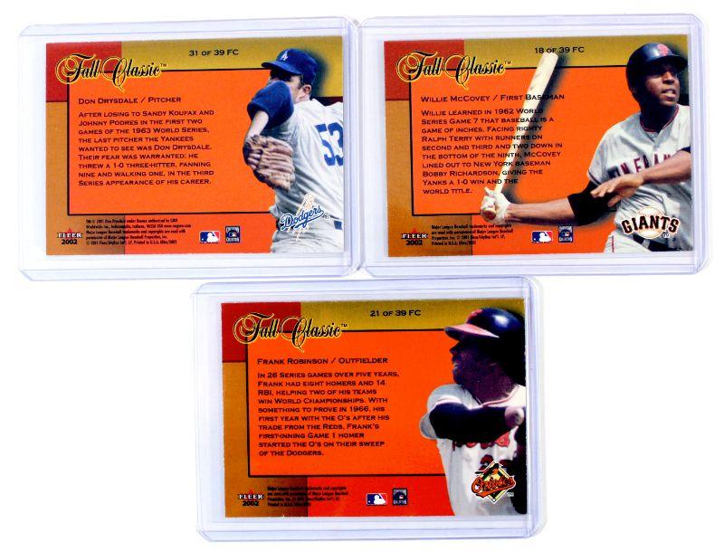 RARE 2002 FLEER ULTRA FALL CLASSIC Willie McCovey Frank Robinson Don Drysdale Cards Set