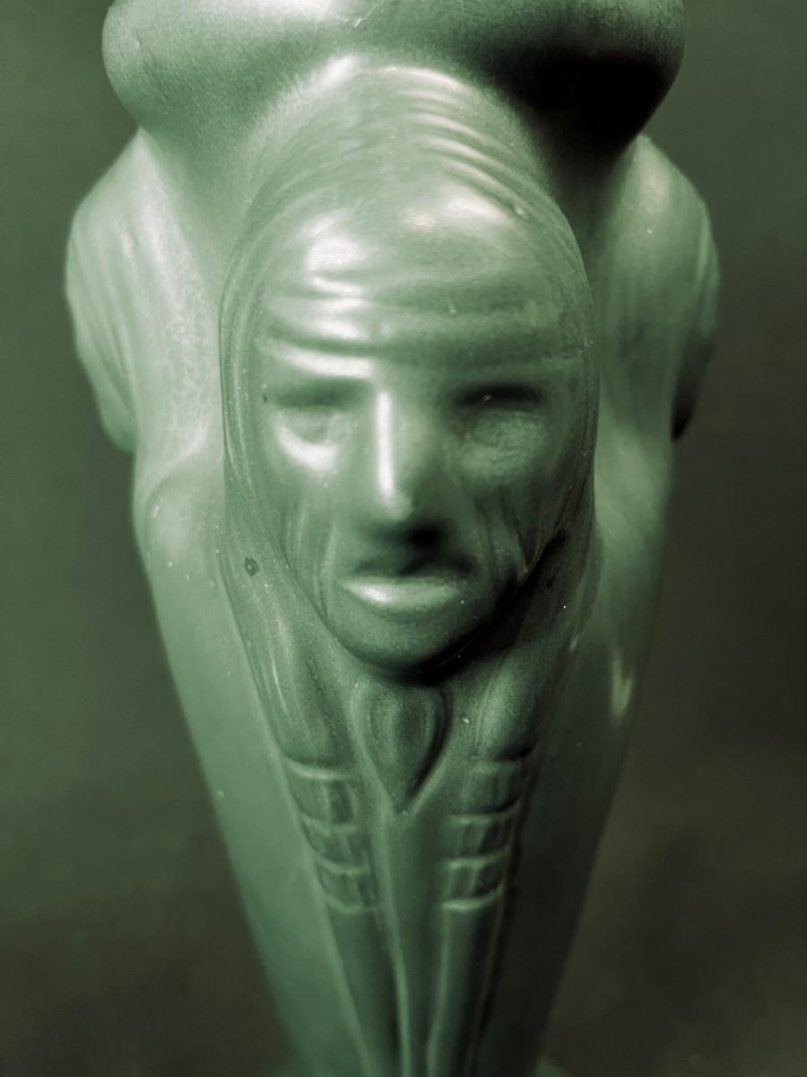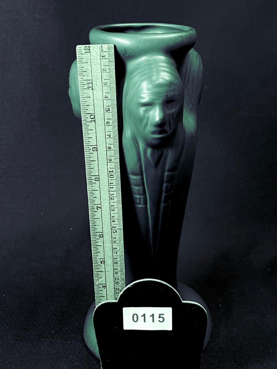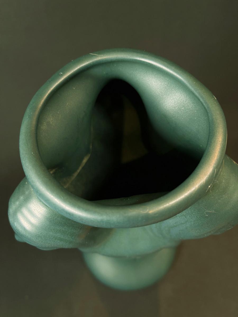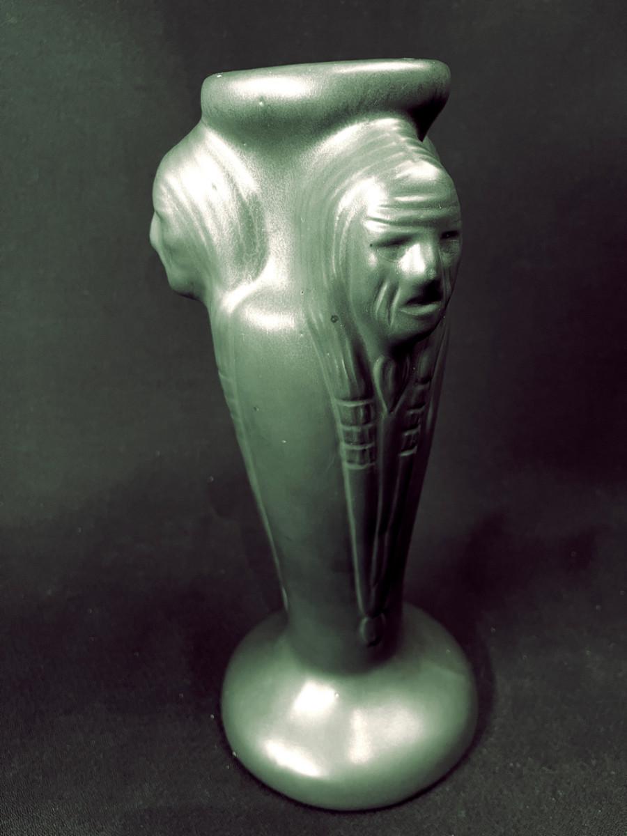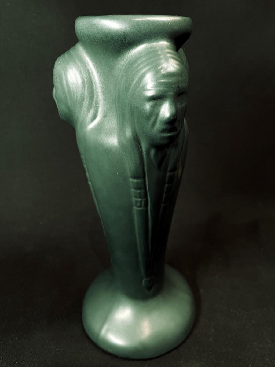 Rare Dark Green 3 Face Indian Van Briggle Vase