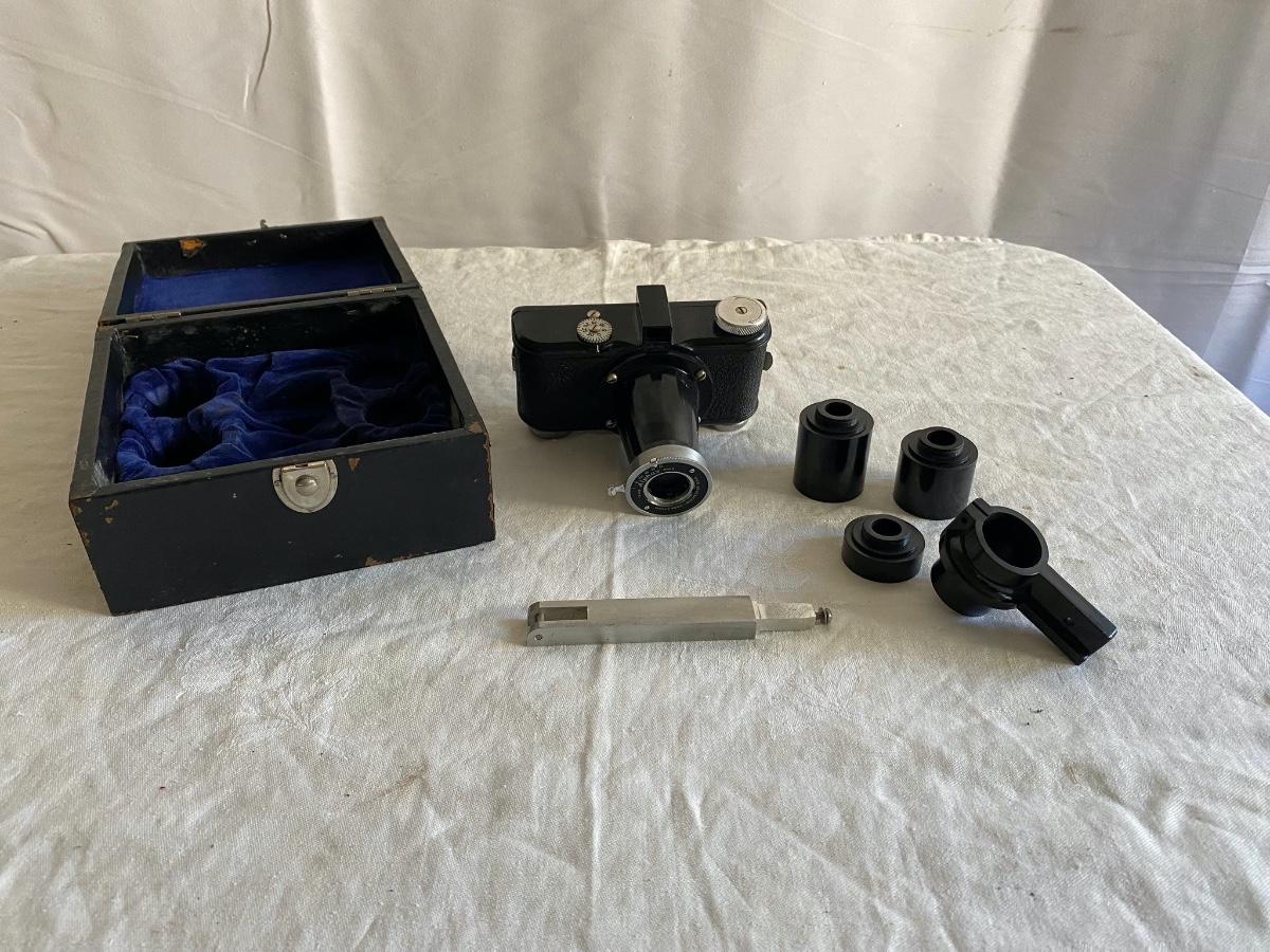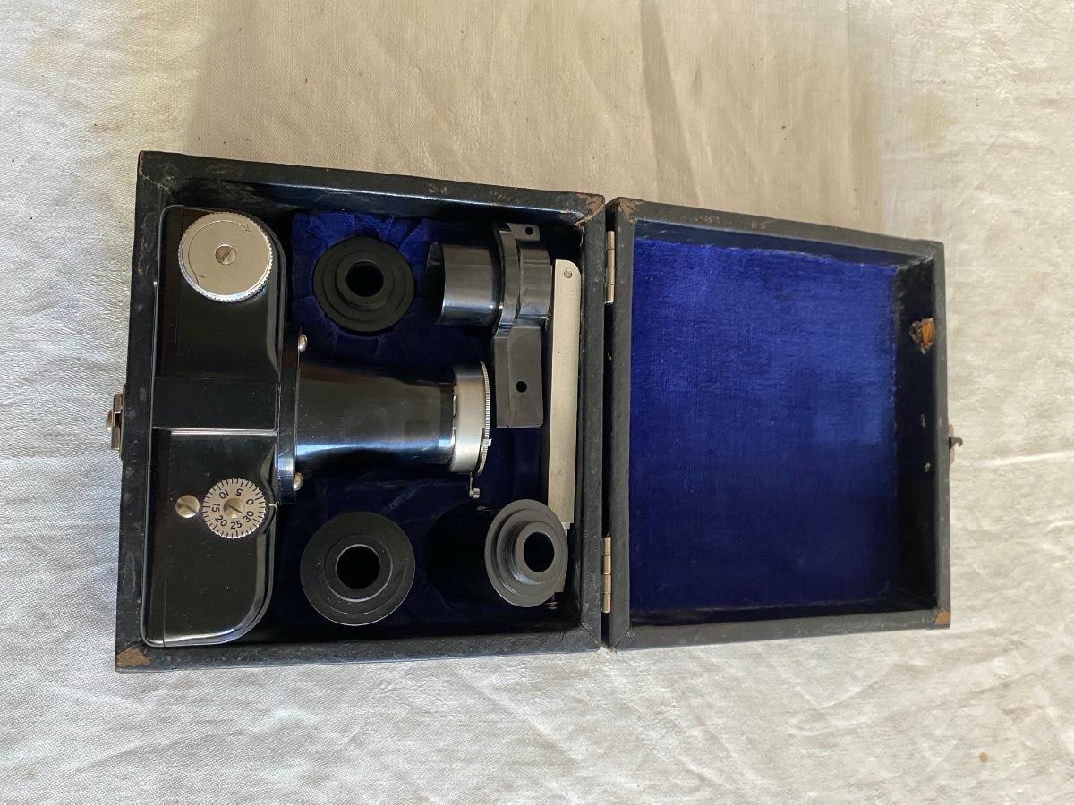 This rare Alphlax histoslide camera was the property of Paul Francis Kerr, geologist. In original box with velvet lining.
