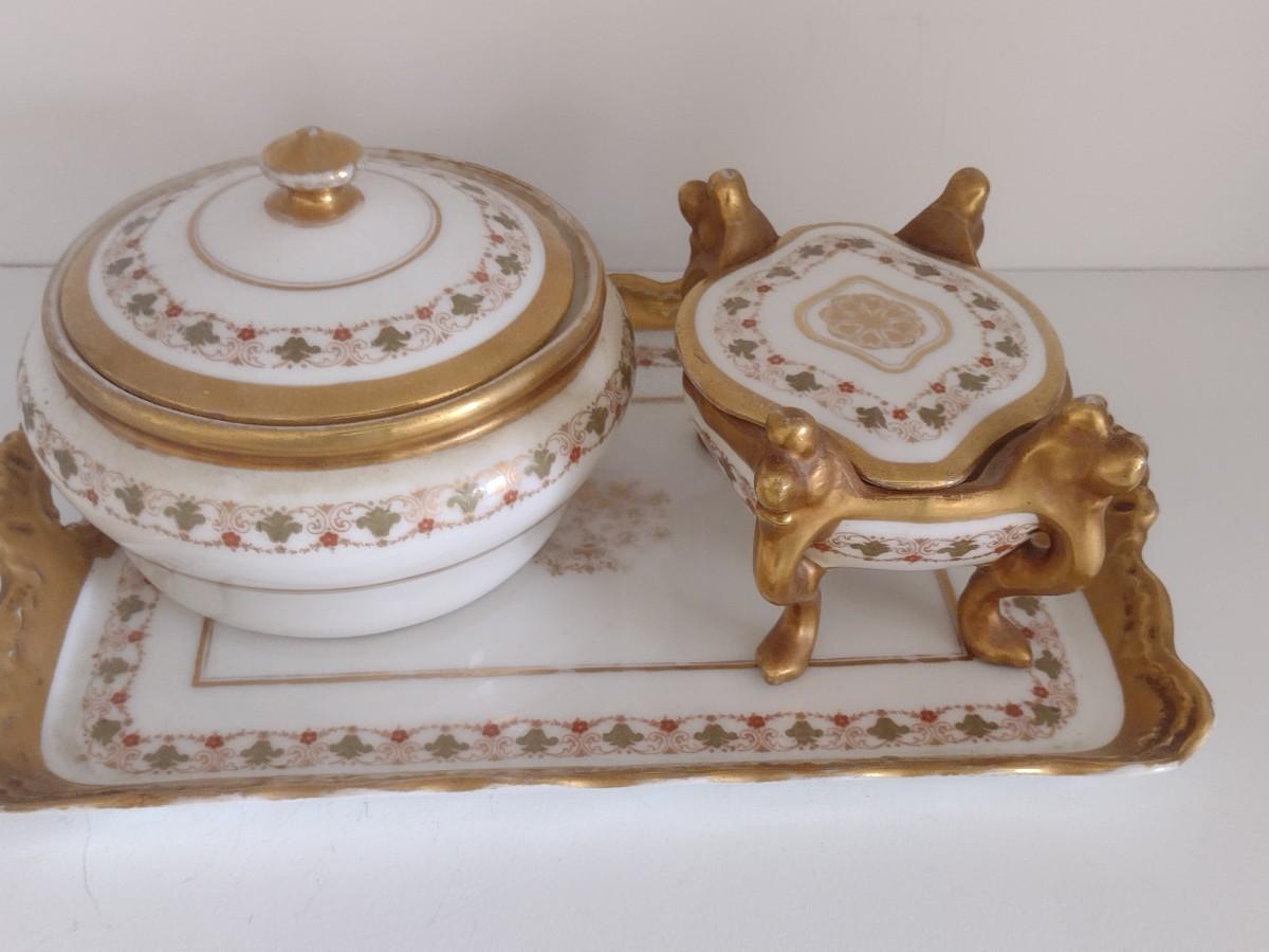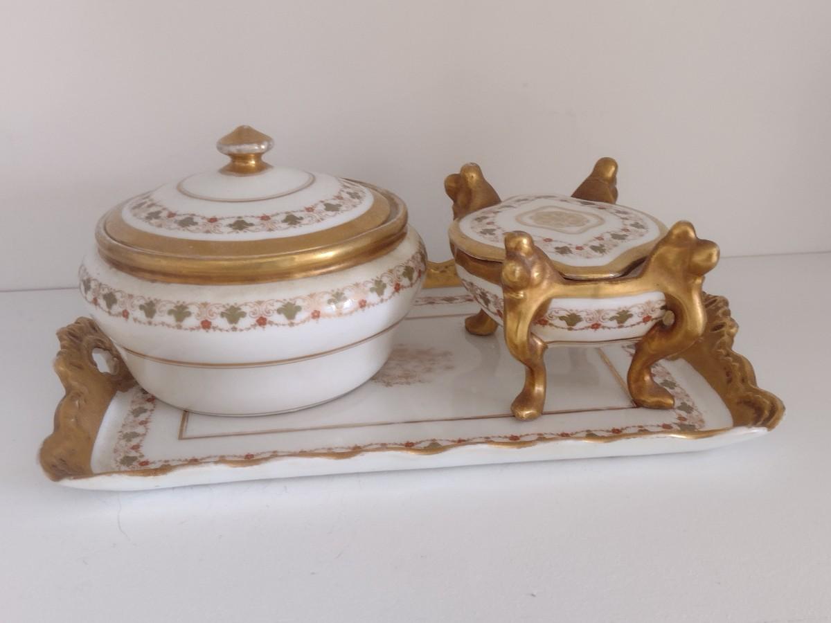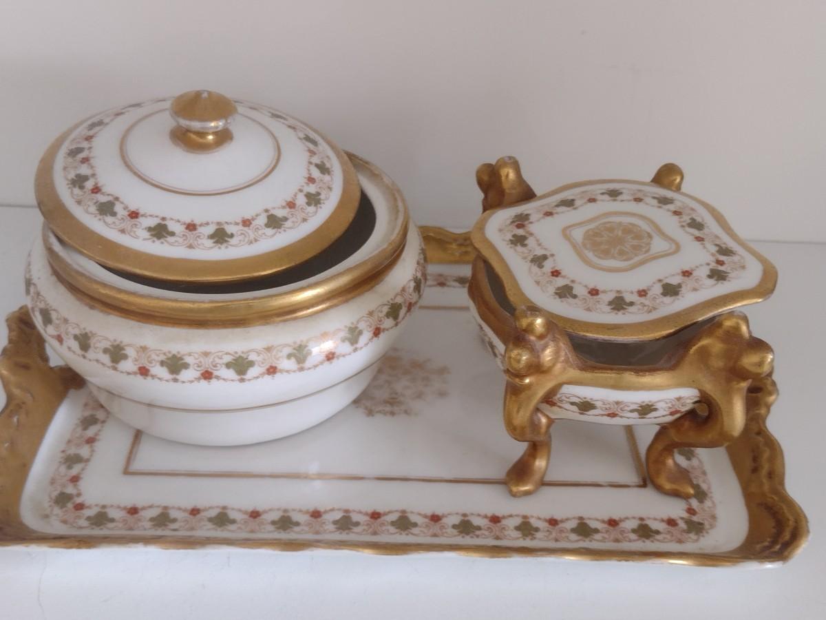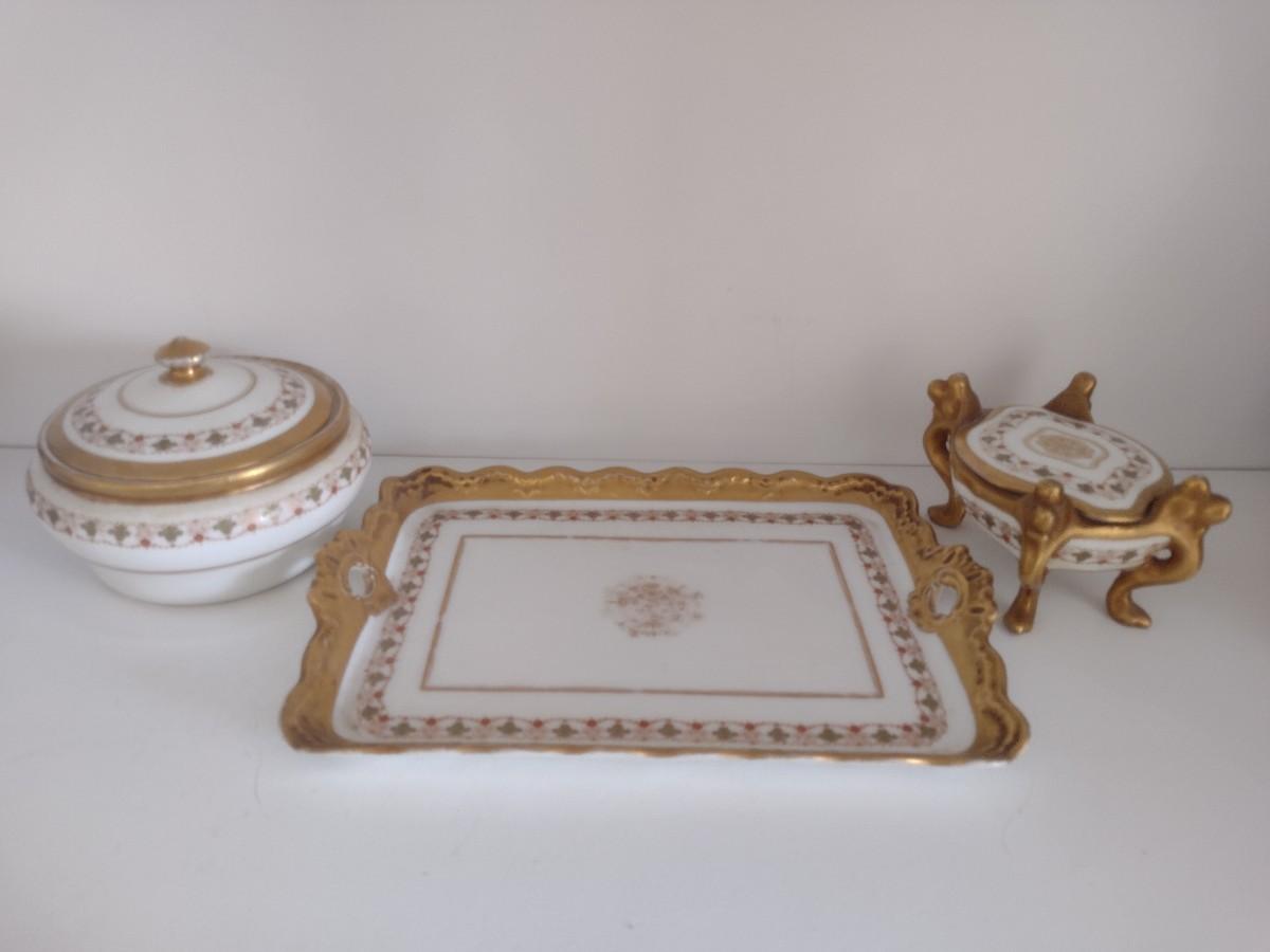 Rare Antique B&H Blakeman & Henderson Limoges France Three Piece Vanity Set Circa 1890's
