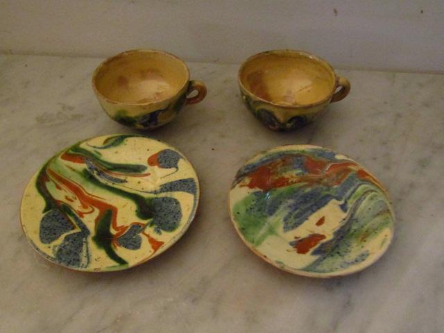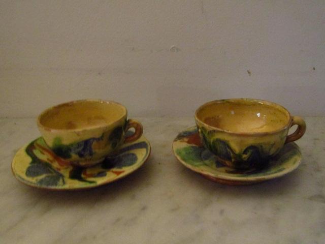 Rare Antique Cups and Saucers (2 of each) by S. Bertoux A. Cluny
