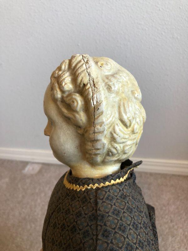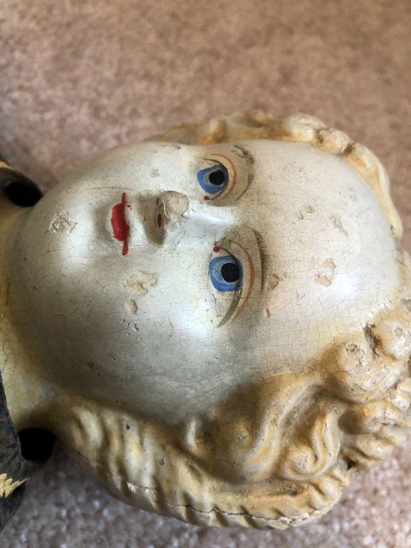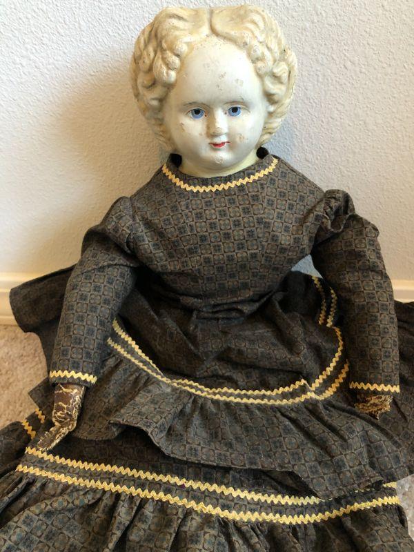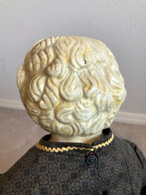 Rare Antique Greiner's Patent Blonde Paper Mache Doll in Dress