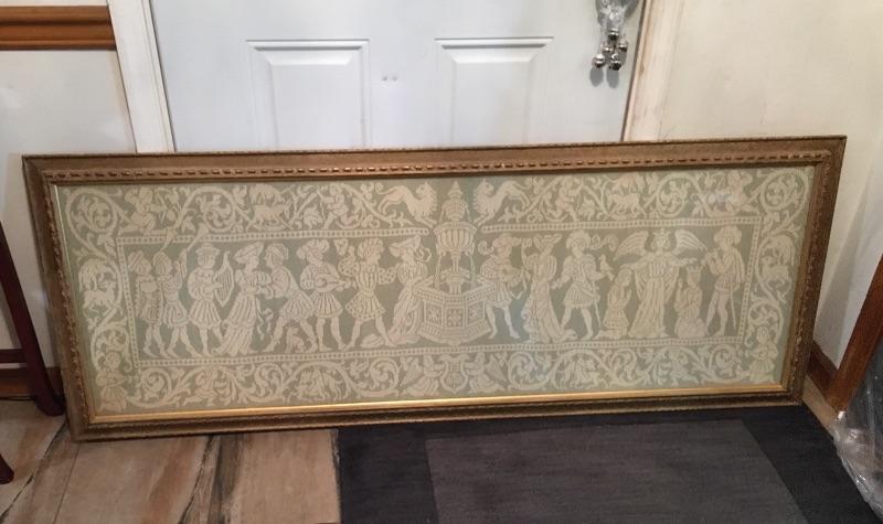 Rare Antique Handmade Lace Tapestry 60” x 20” with Frame. LOT A36