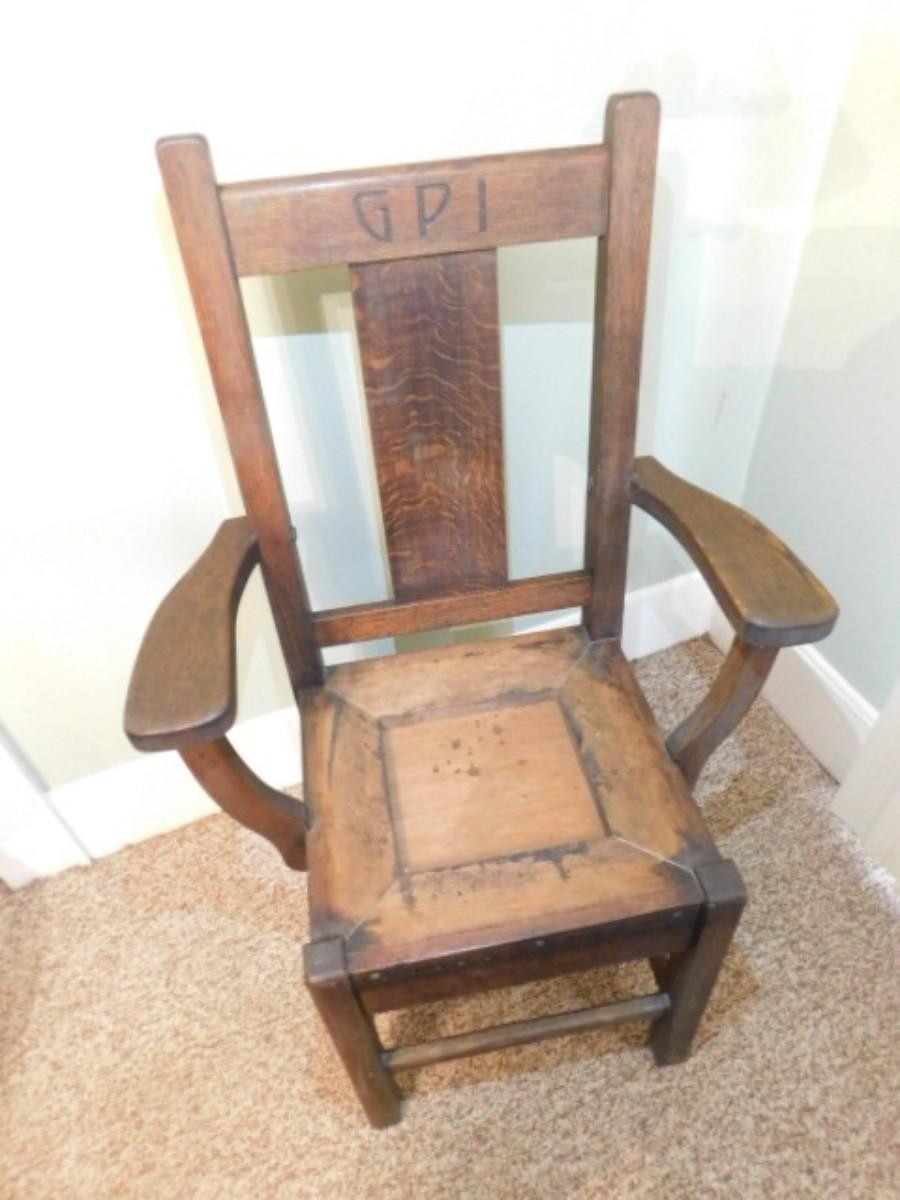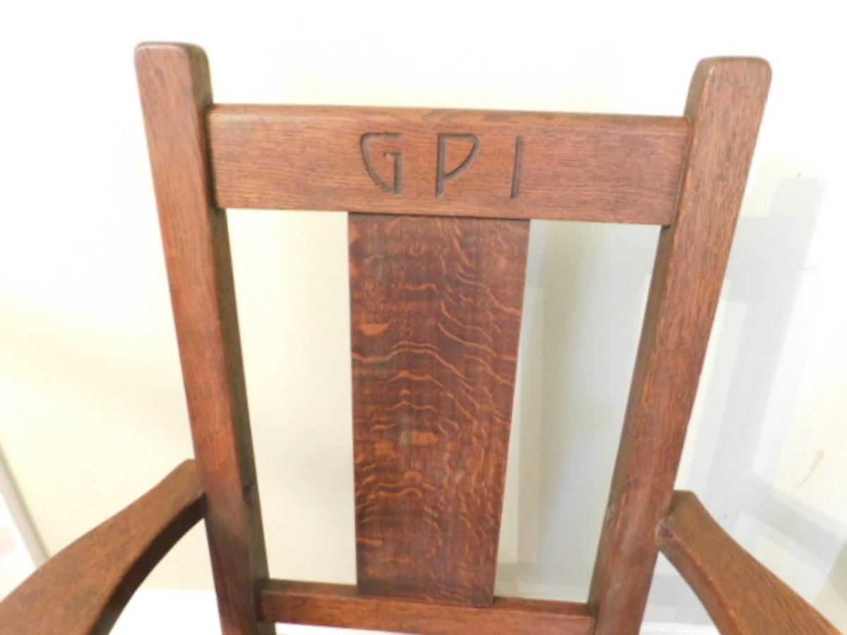 Rare Antique Roycroft Tiger Oak Grove Park Inn Mission Design Chair Maker's Mark (Back Rail) Choice A