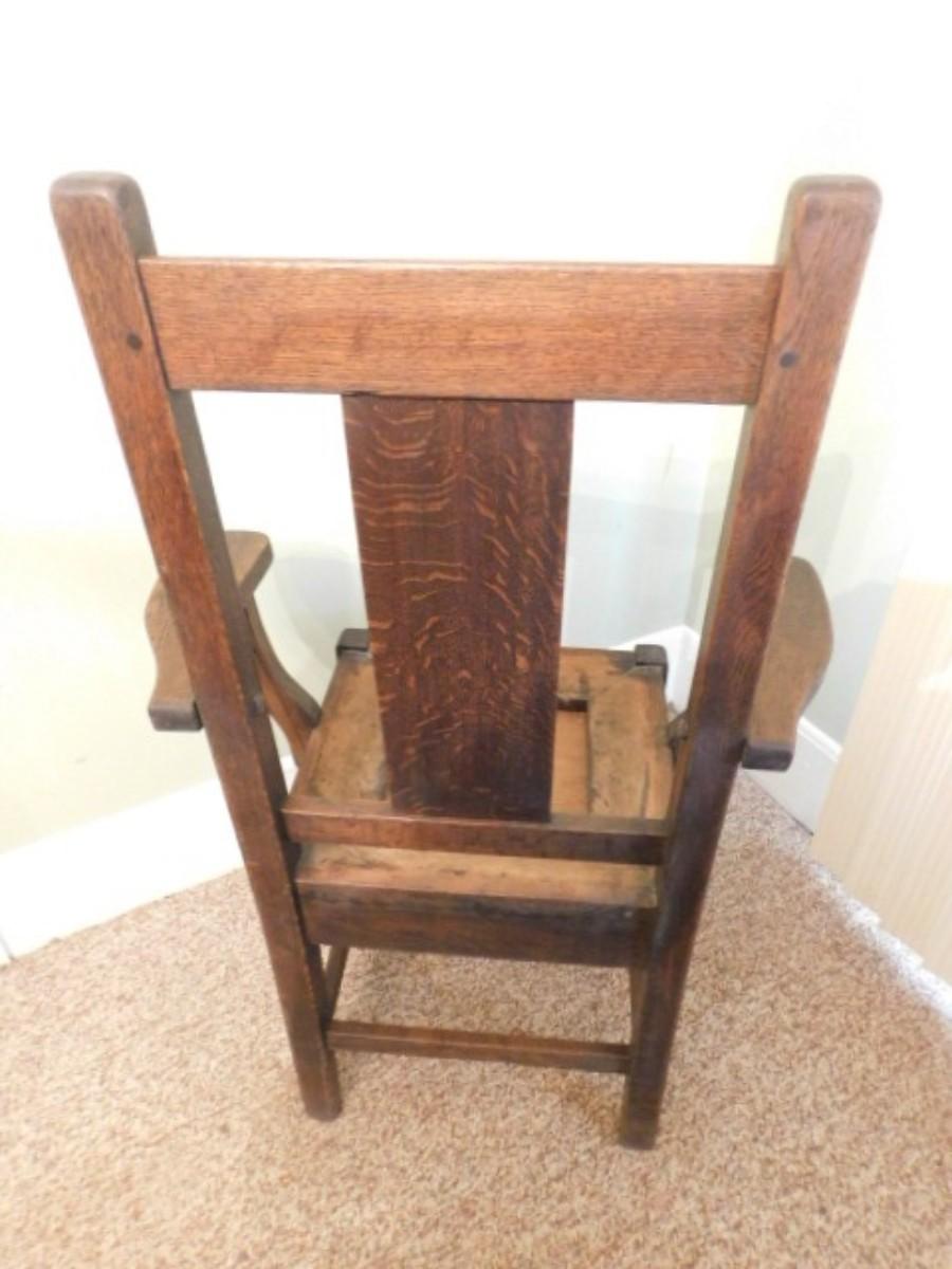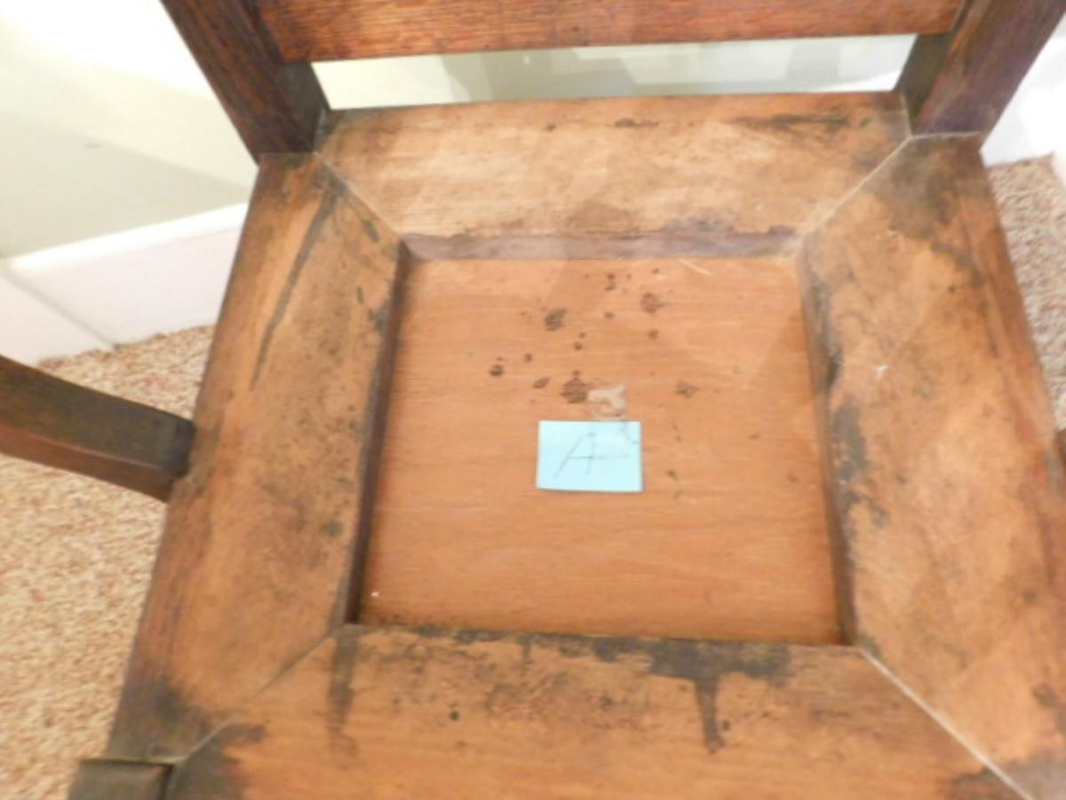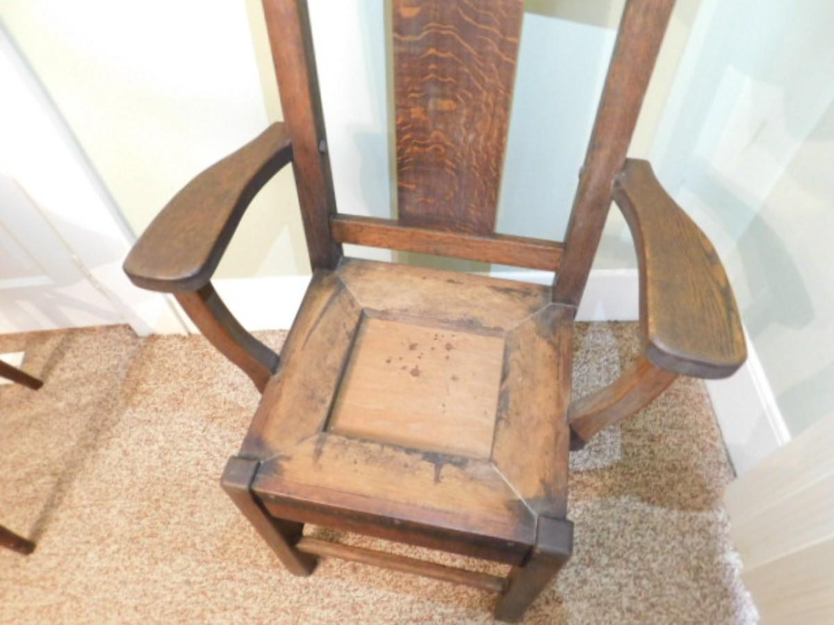 Rare Antique Roycroft Tiger Oak Grove Park Inn Mission Design Chair Maker's Mark (Back Rail) Choice A. Very solid and great structural integrity. Needs seat cover.