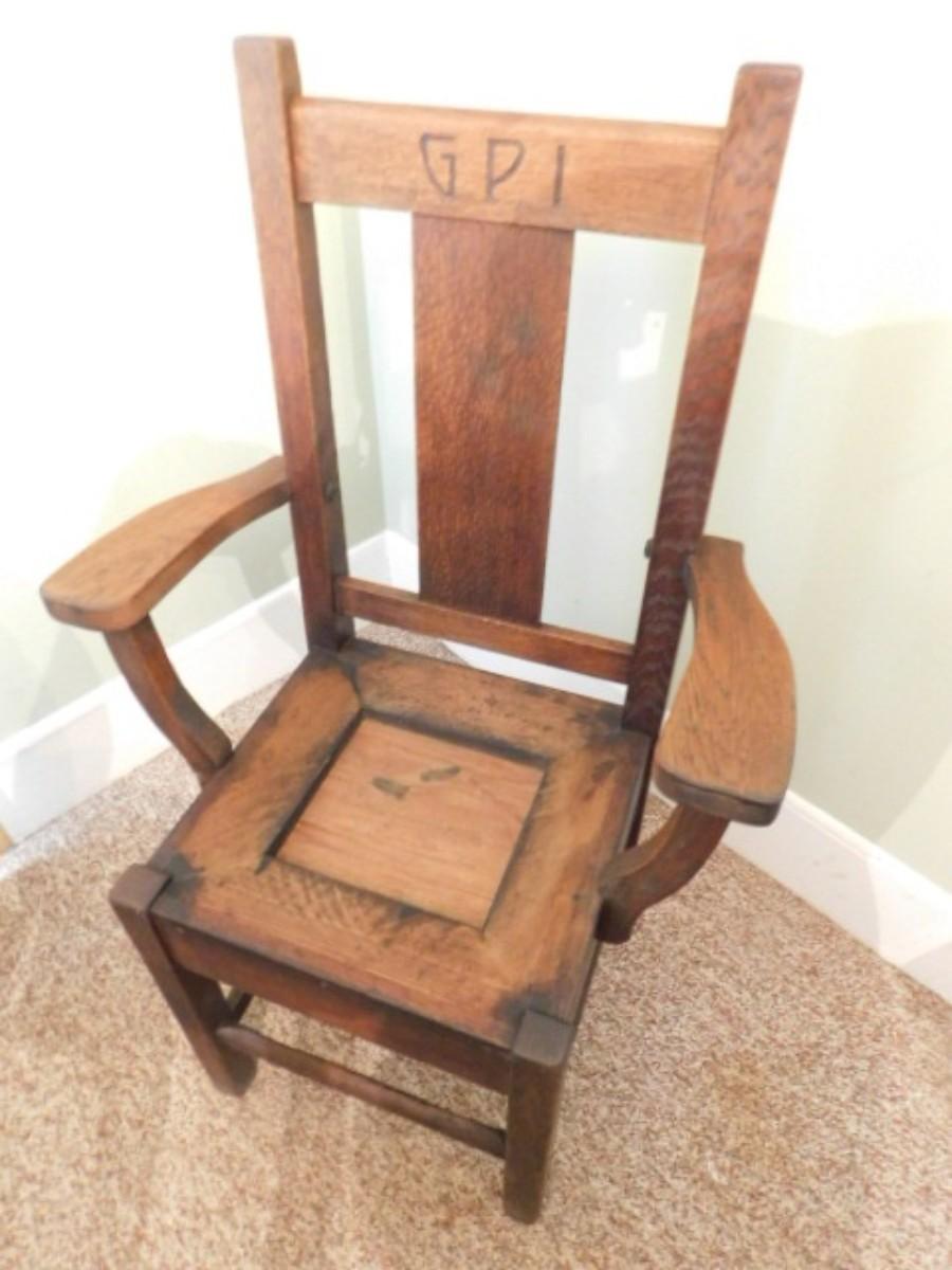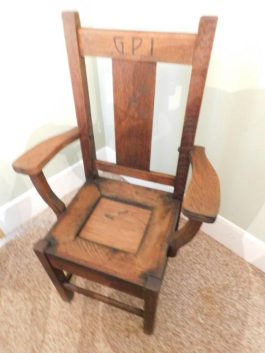 Rare Antique Roycroft Tiger Oak Grove Park Inn Mission Design Chair Maker's Mark (Back Rail) Choice D