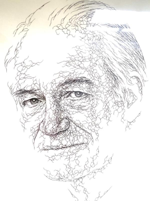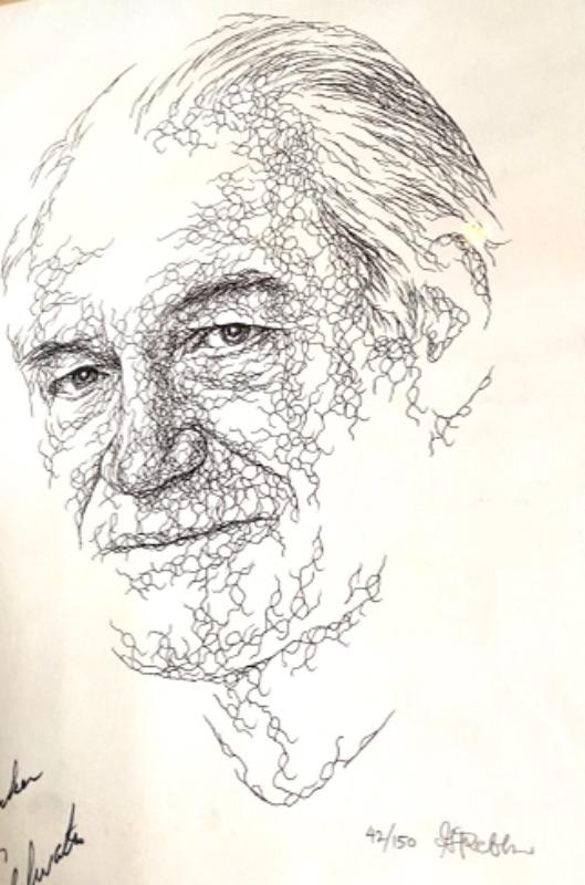 RARE Autographed Barry Goldwater Pen and Ink Line Drawing Print Signed