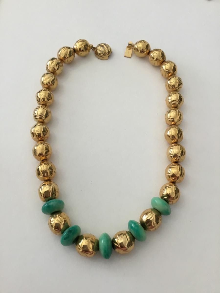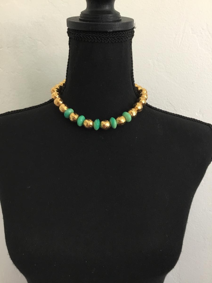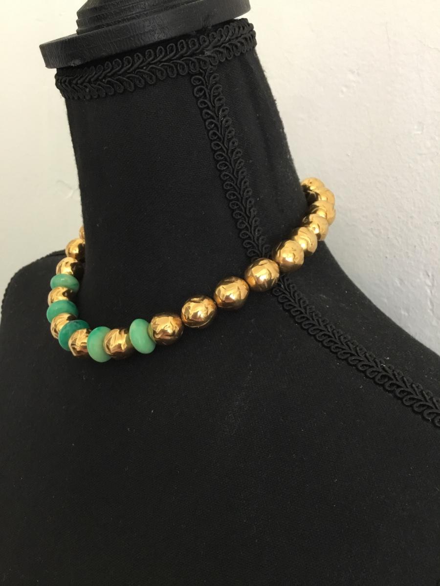 Rare Beautiful, Gold toned & faux jade beaded choker style necklace