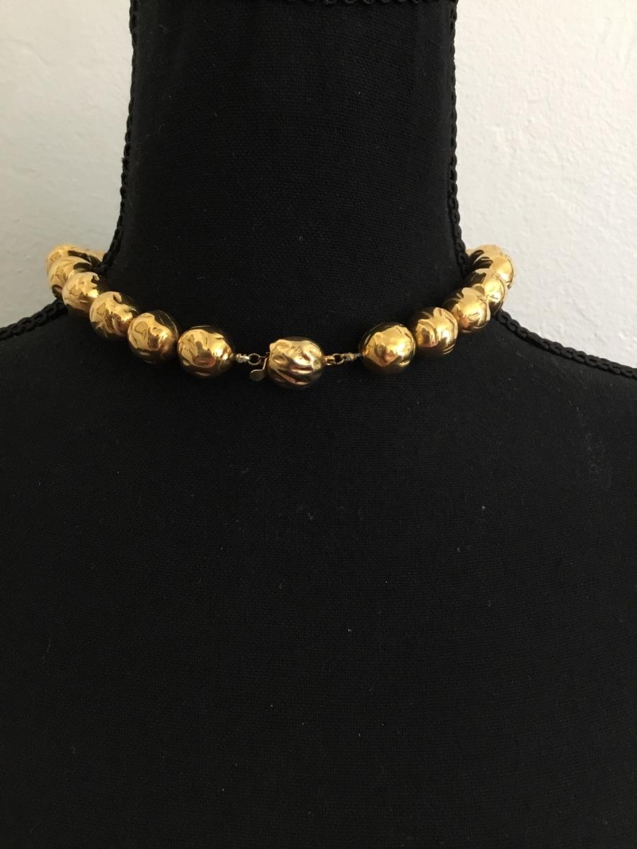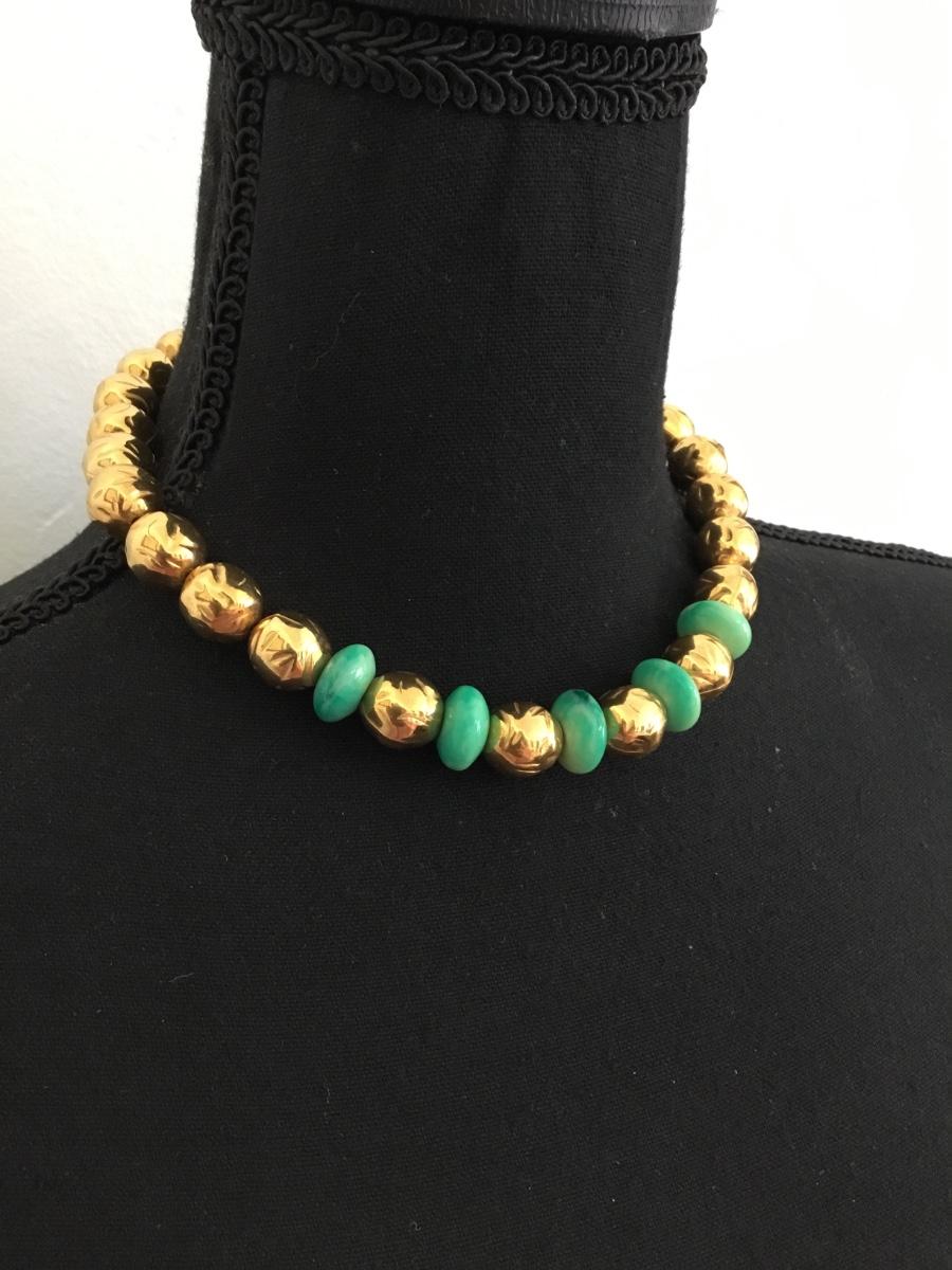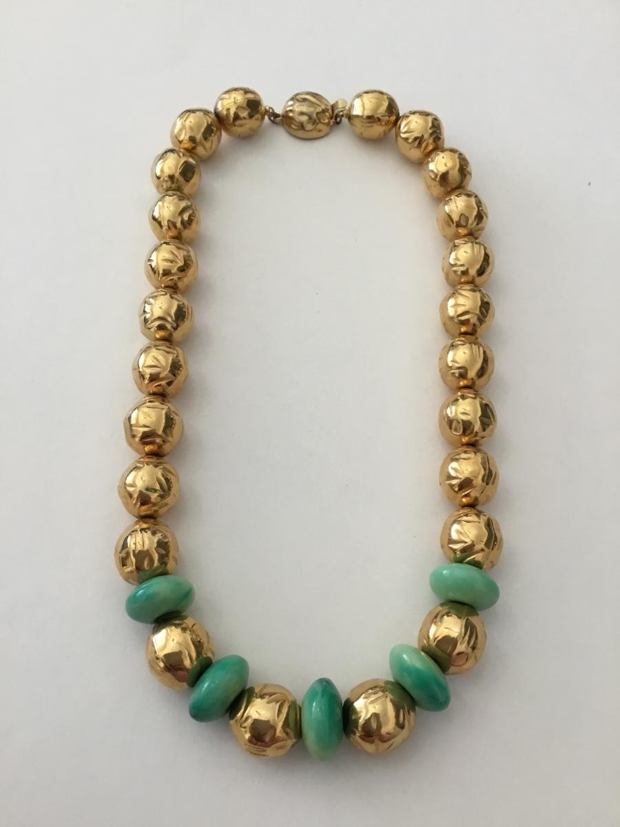 Rare Beautiful, Gold toned & faux jade beaded choker style necklace