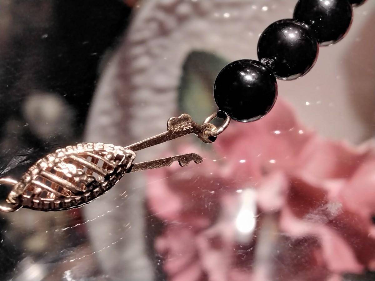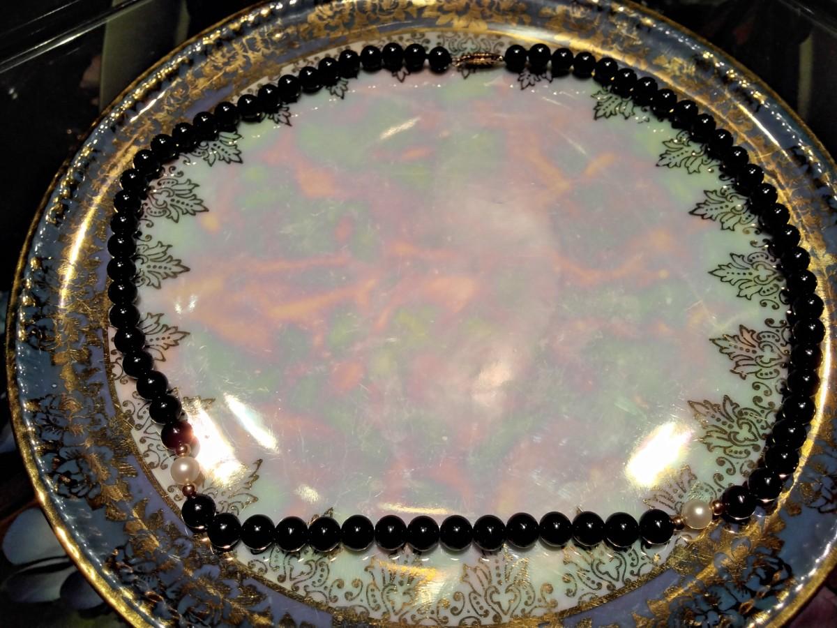 Rare Black onyx necklace with 2 white pearls 17" 6.5mm 14k clasp and beads