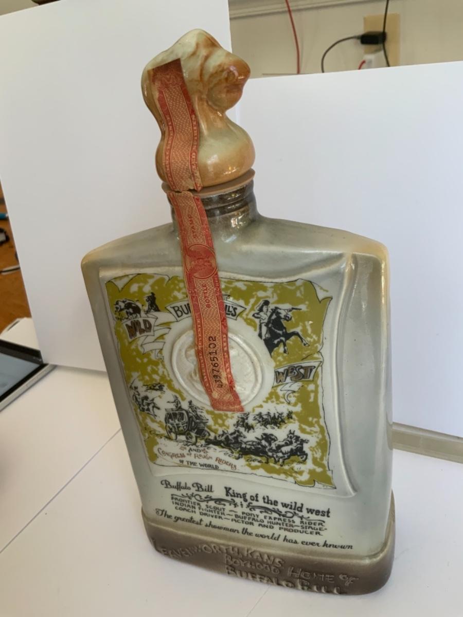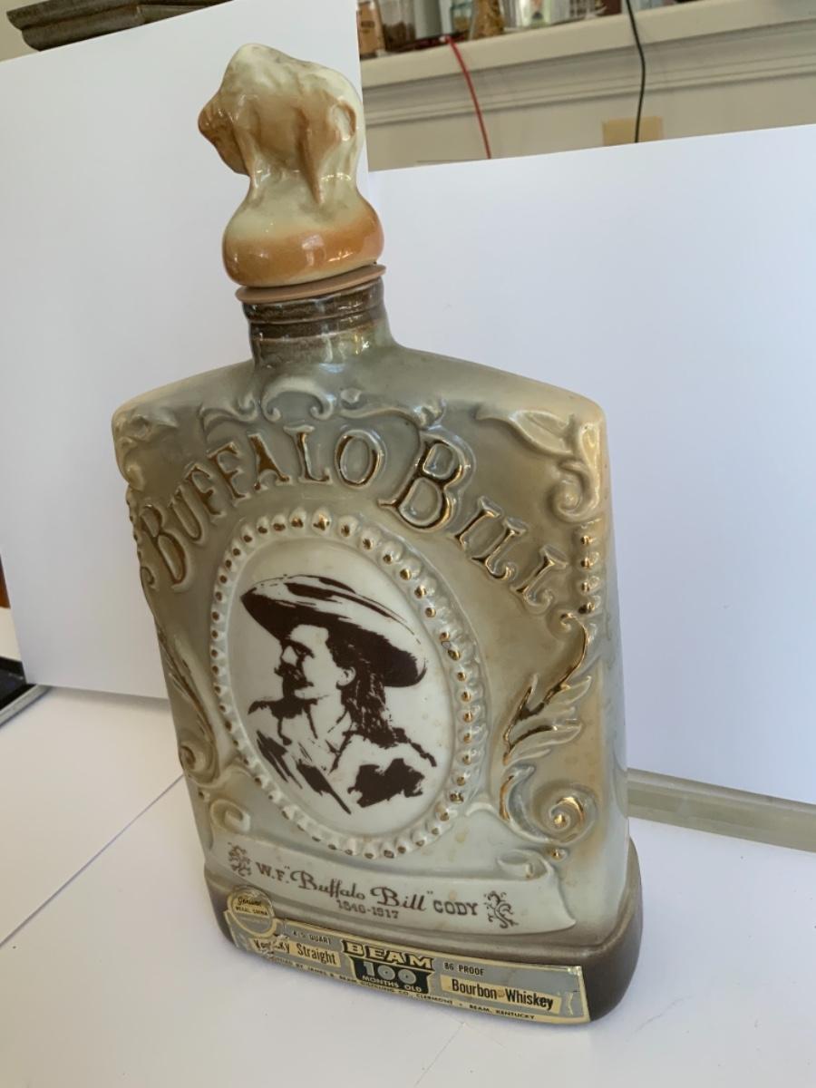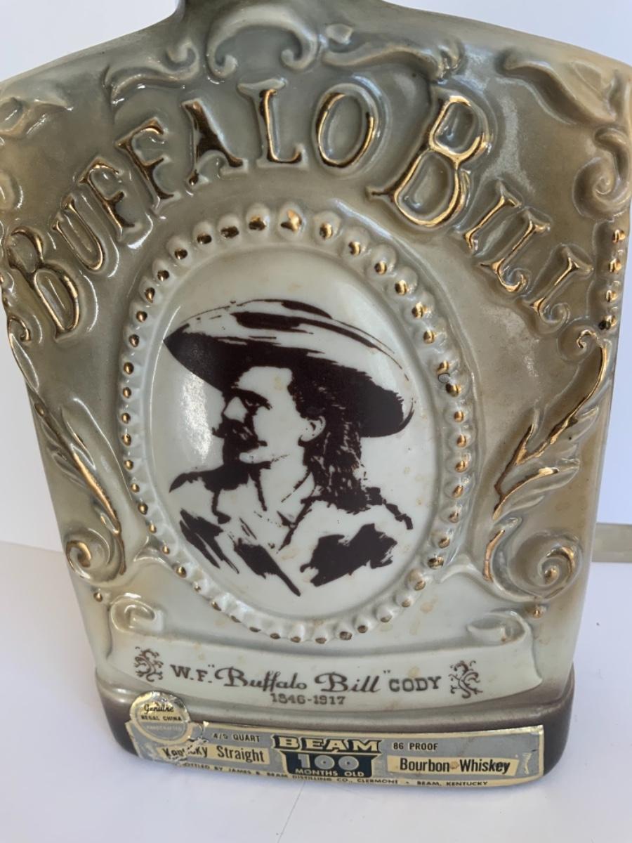 Rare decanter vintage 1971 WF buffalo Bill Cody jim Bean Whishkey Decanter. this decanter is empty.