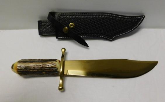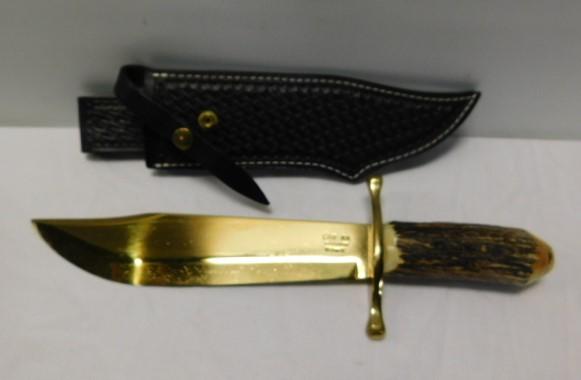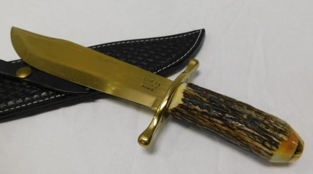 Rare Case XX Bowie Knife Brass Hitl Gold Tone Blade and Stag Handle 1992 14.5"