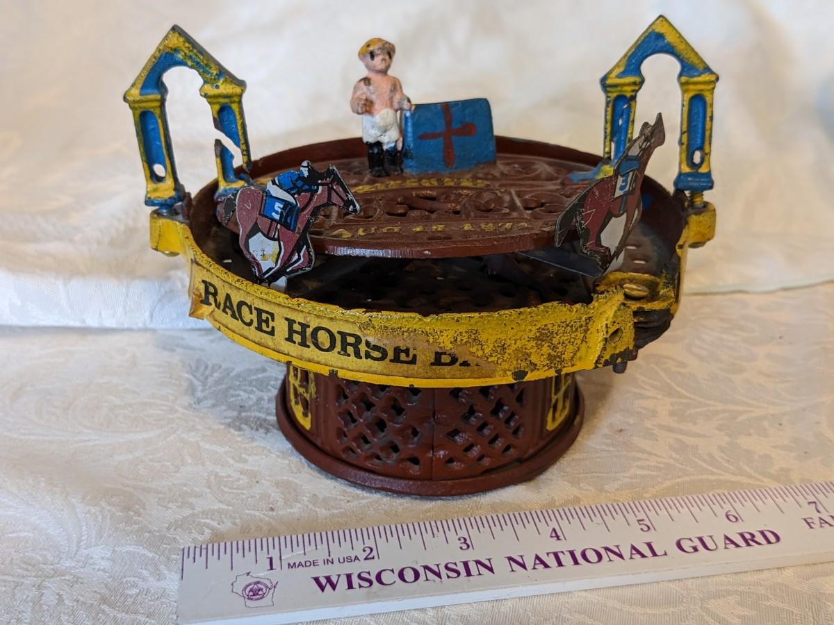 Rare Cast Iron Race Horse Mechanical Bank patented in 1871