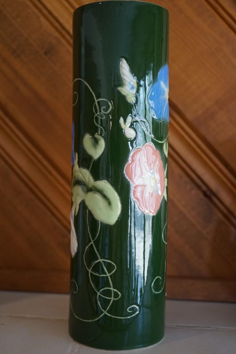 RARE CERAMIC ARTS STUDIO RARE CYLINDER VASE W/RAISED FLORALS BY "ZONA" LIBERACE