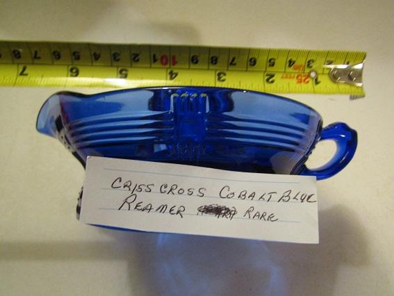 Rare Cobalt Blue Criss Cross Reamer 7" in very good condition