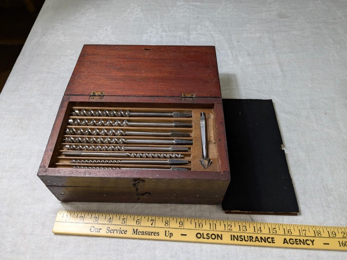 RARE Early Complete Set of 14 RUSSELL JENNINGS Auger Bits in its Original 3 Tiered Box