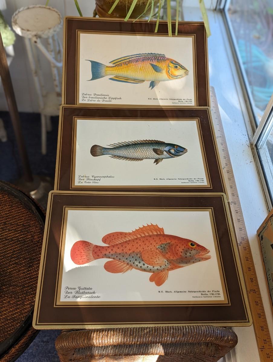 Rare Fallani And Cohn Smithsonian Institution Libraries Fish Placemat Set