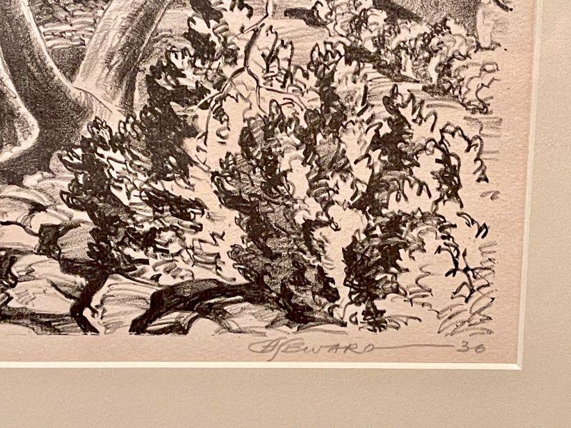 Gift prints were featured for every year, voted on by the Prairie Printmakers committee. The editions were limited and rare to come onto the market. There are two early works in this sale by charter member of this work - Seward.