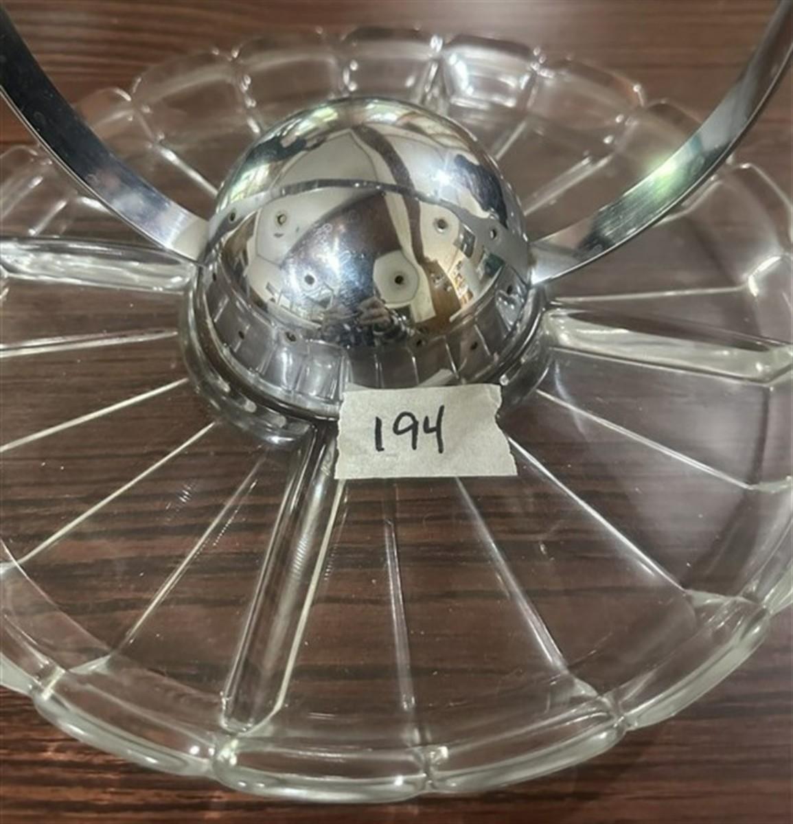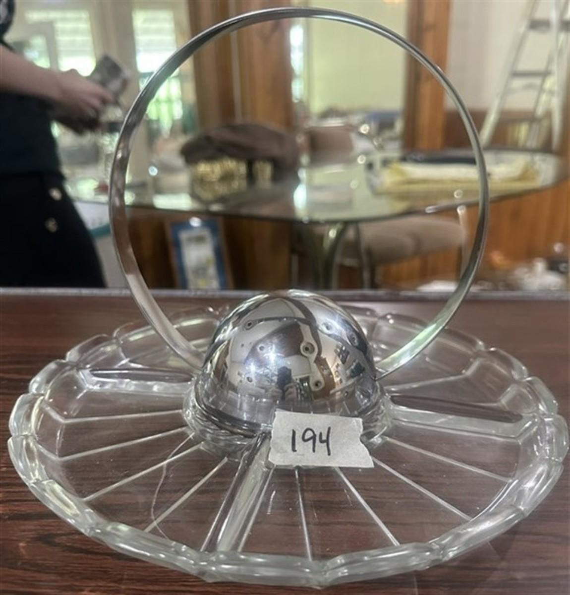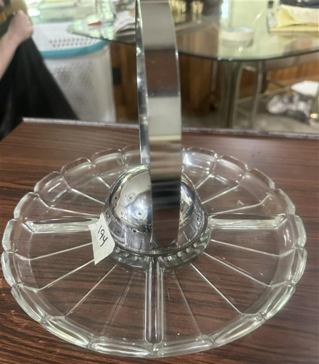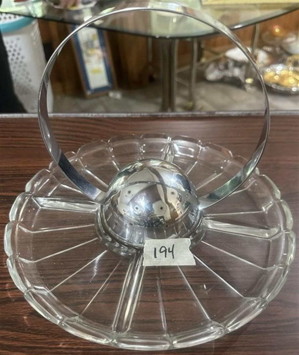 194 Rare Glass Hors D'oeuvres Tray with Center Toothpick Holder w/Attached Handle