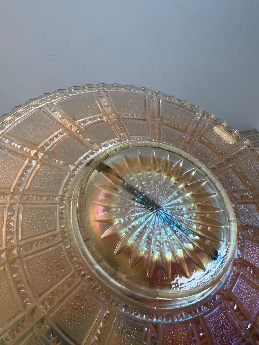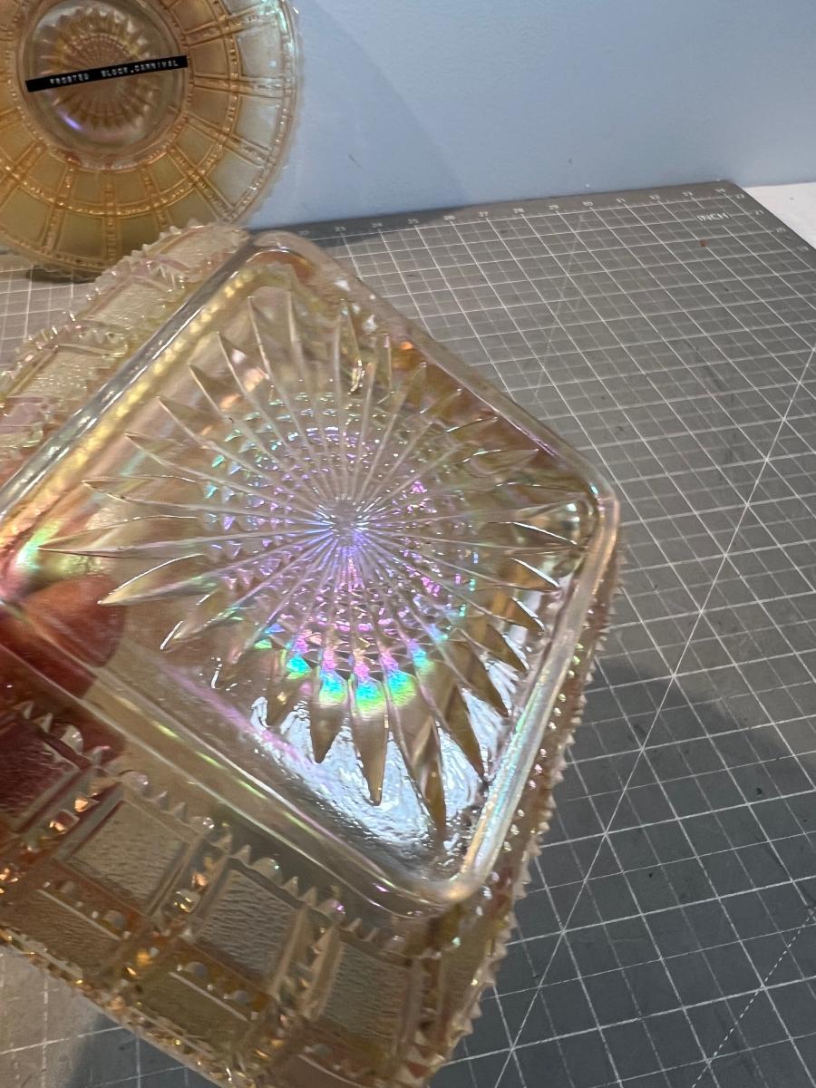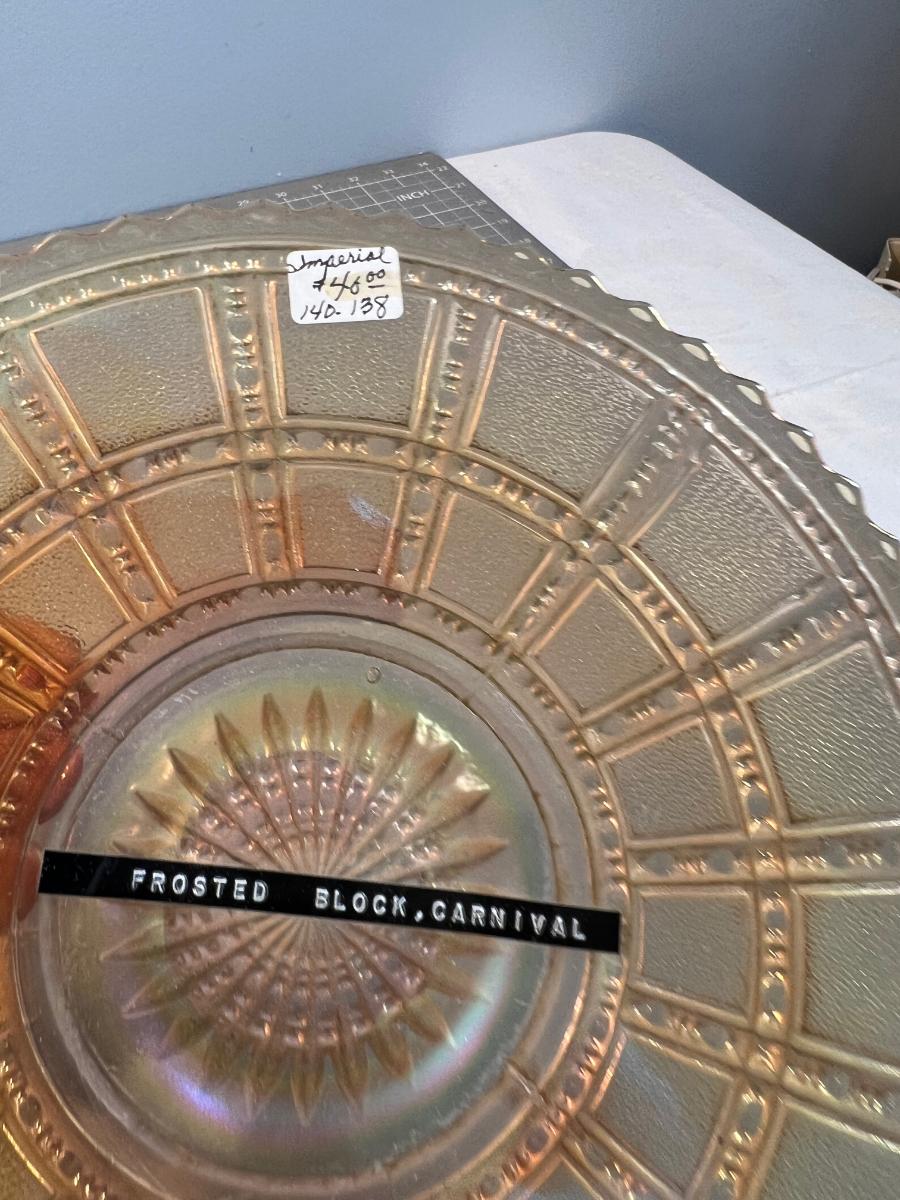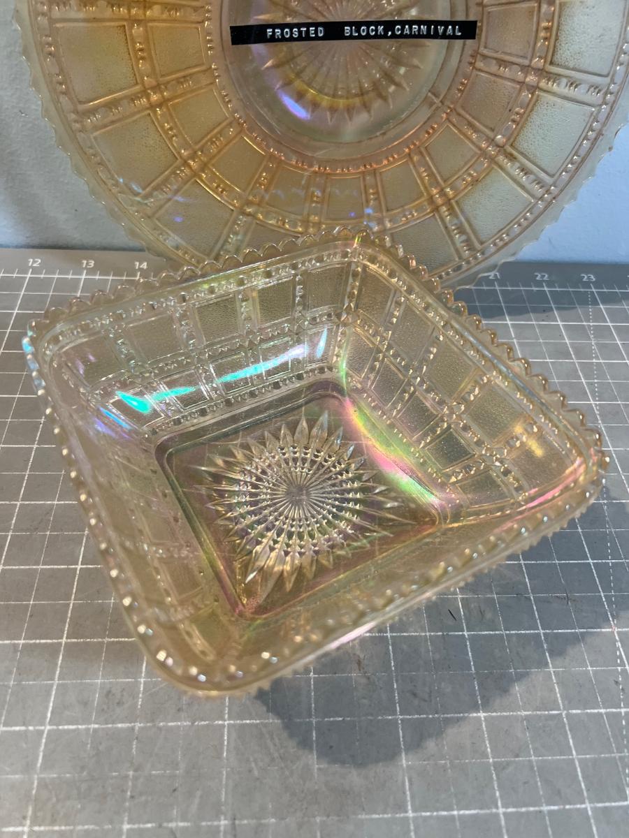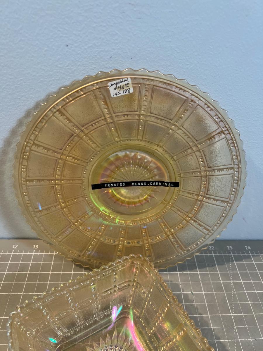 Rare! Imperial Frosted Block Carnival Glass Bowl & Plate.