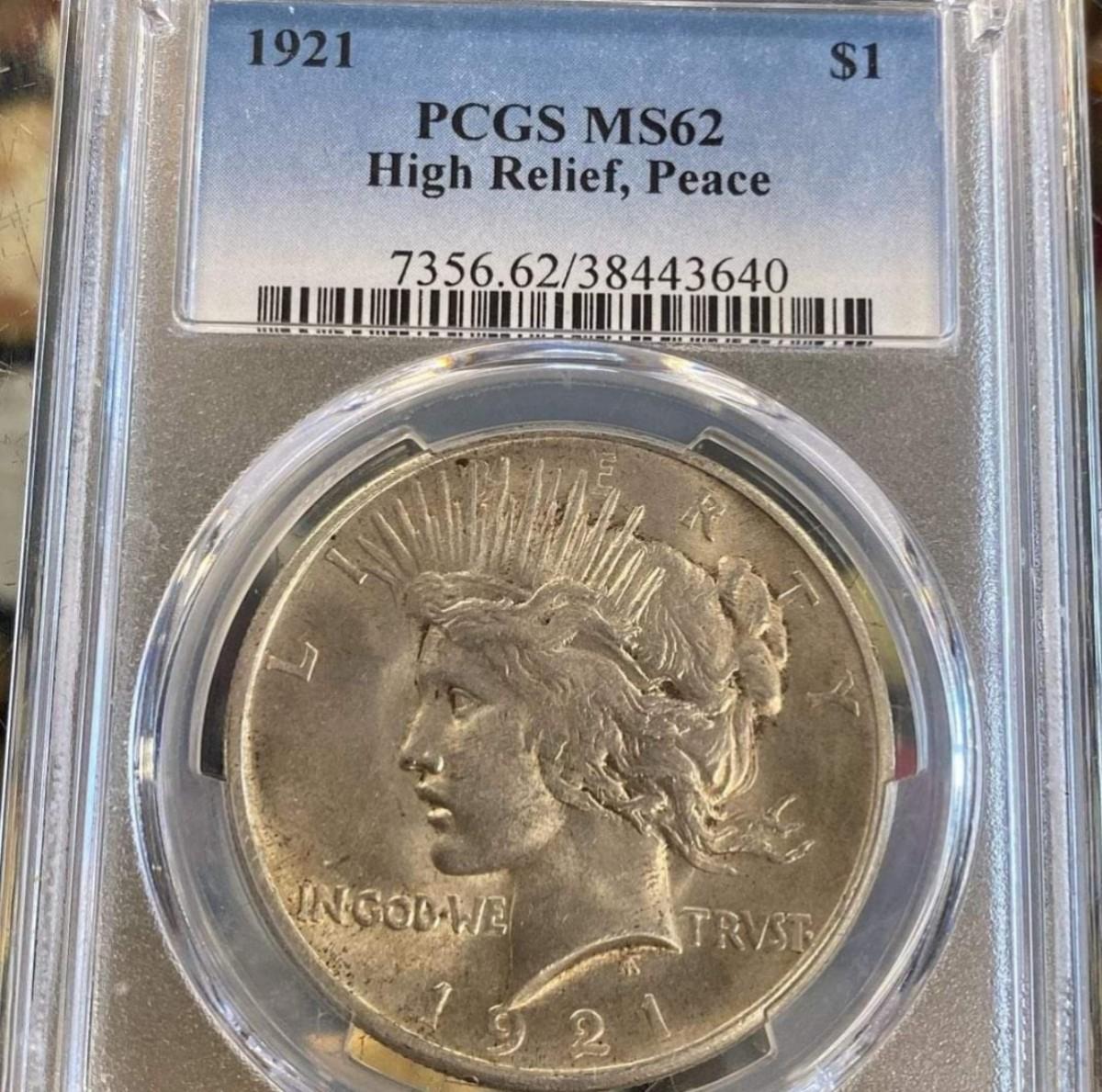 Rare Key Date 1921 Graded High Relief Peace dollars