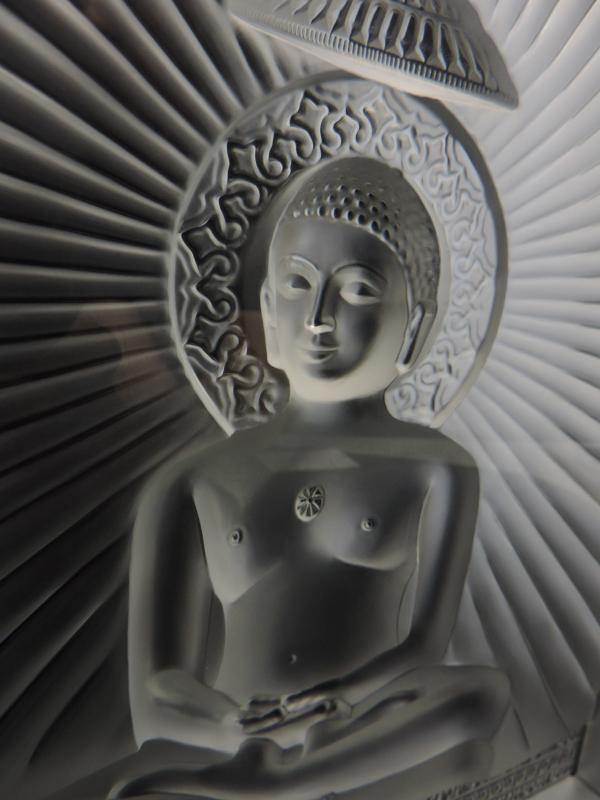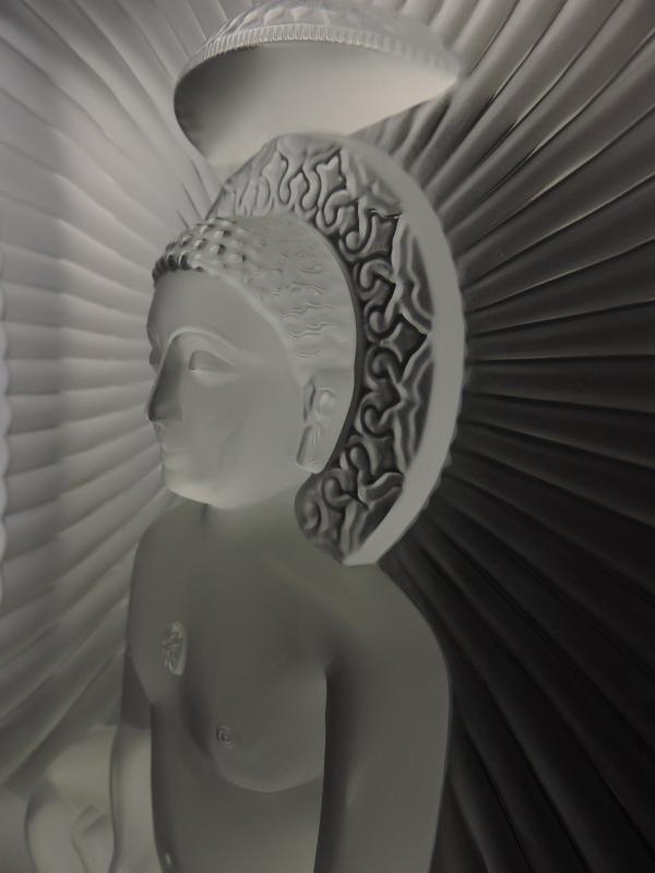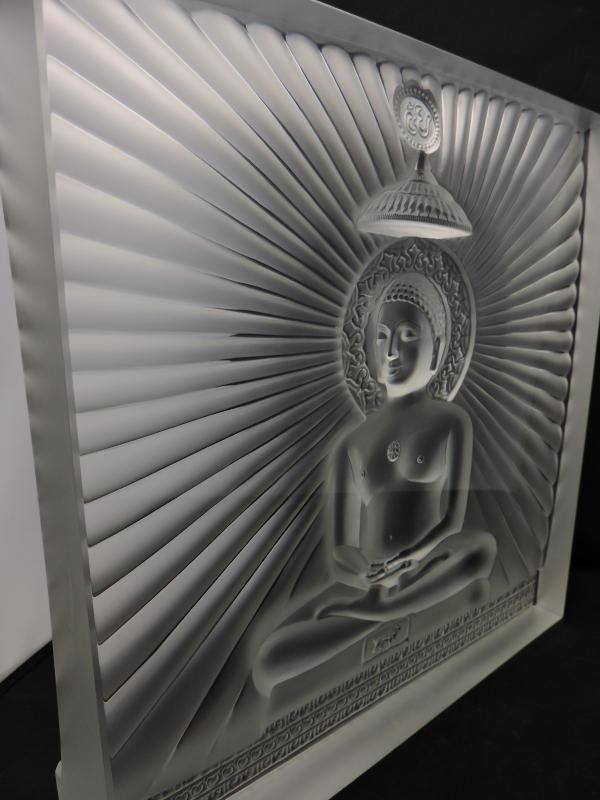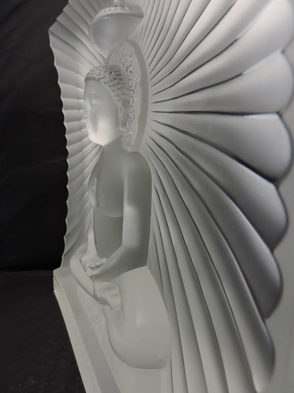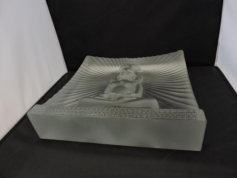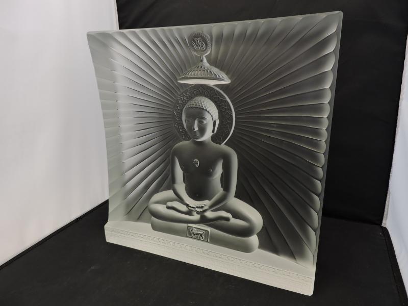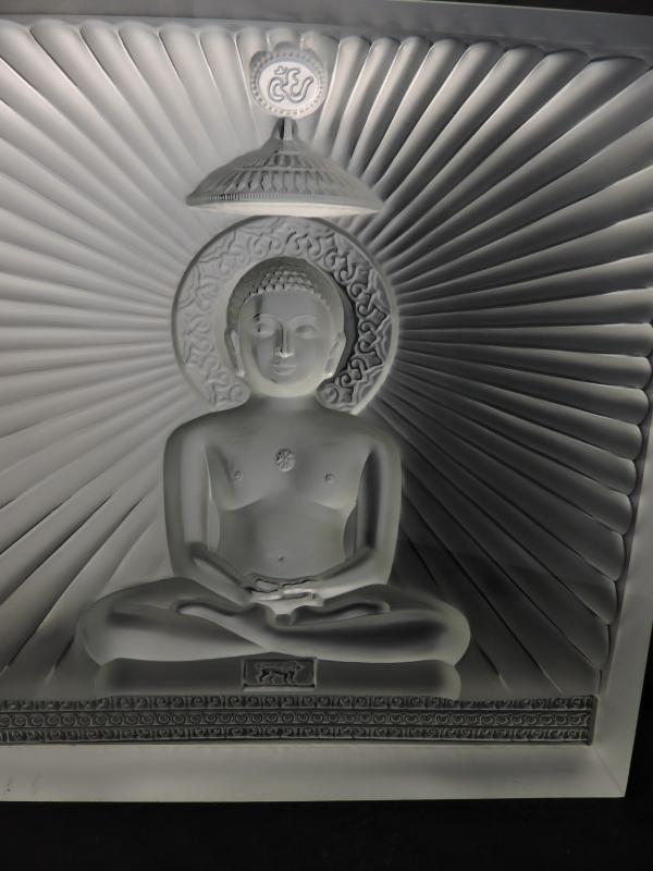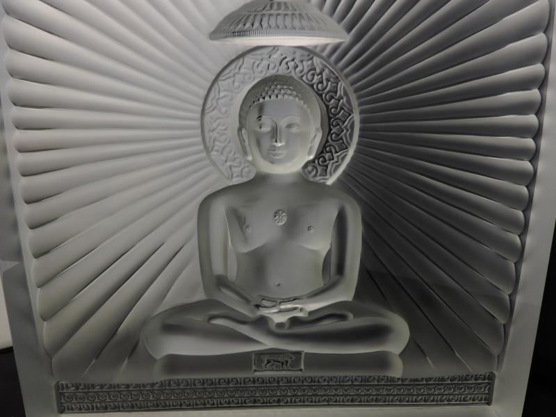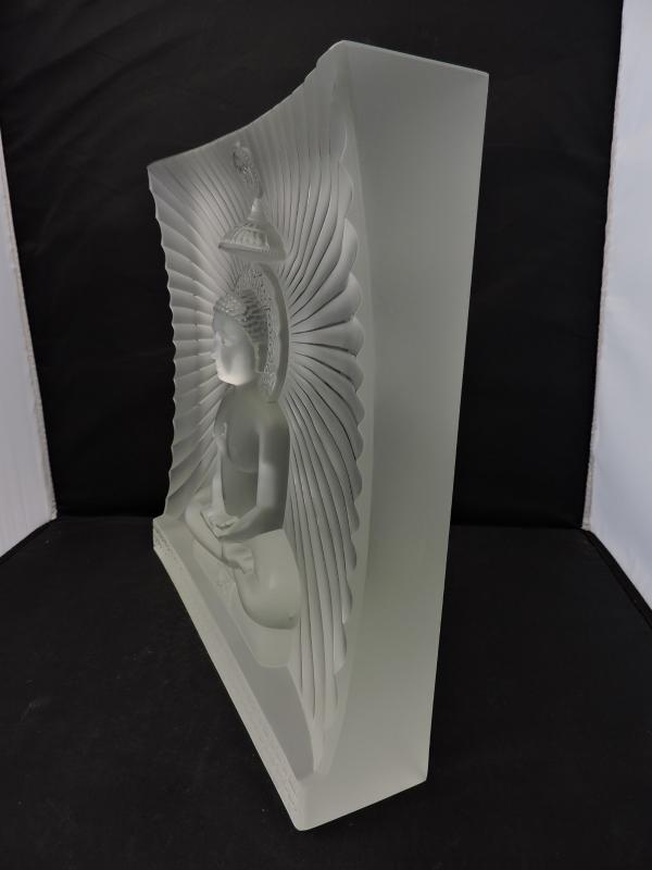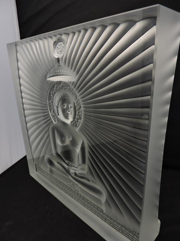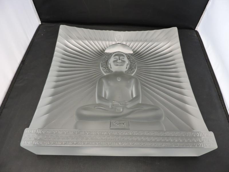 This extremely rare Lalique Mahavir Jain sculpture is truly amazing. Limited edition in original box with original receipt. Never displayed only taken out of the box to be photographed. It has a feature that is amazing, on the reverse of the piece, Lord Mahavir's image will follow from any angle you look at it. (See photos). This item is in perfect mint condition with no damage, no chips, no scratches. It's Perfect“🦆 Here is your chance to own a unique rare and beautiful Lalique Mahavir Jain sculpture. Measurements: 12.5” x 12.5” weighs 29 pounds, very heavy.