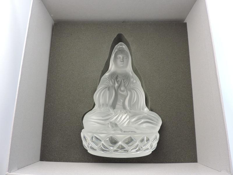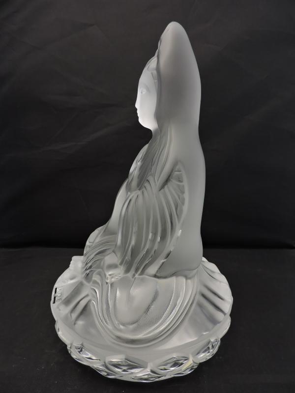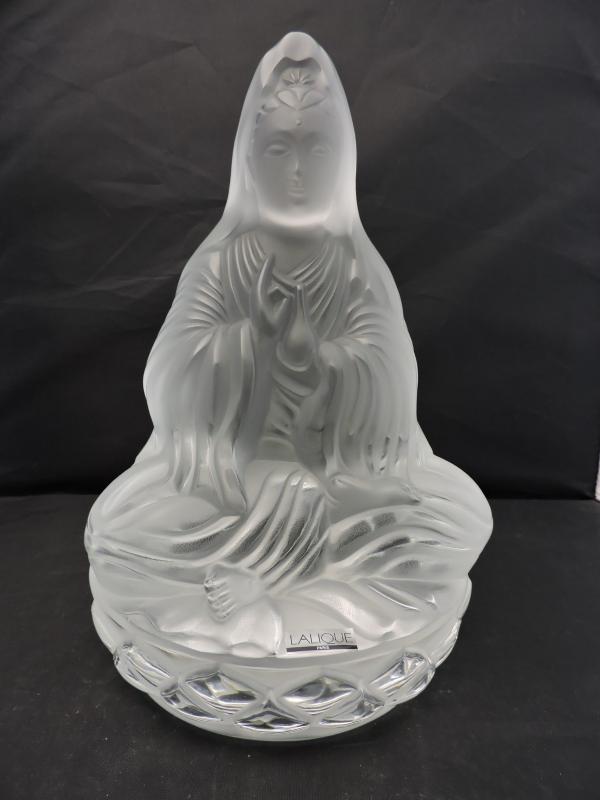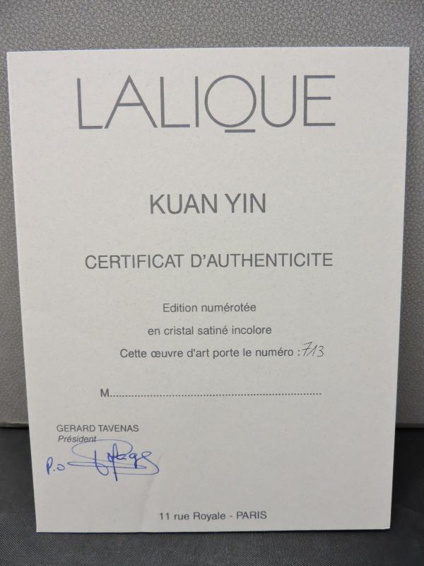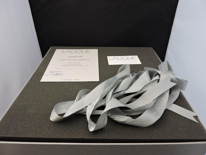 Rare Lalique Kuan Yin crystal sculpture. Hand signed & numbered on the base. Limited edition in original box with all paperwork & original receipt. Never displayed only taken out of the box to be photographed. This item is in perfect mint condition with no damage, no chips, no scratches. Approximate measurements: 11.5" height X 7.5" diameter. Weighs approximately 16 pounds, very heavy. A great opportunity to add to your collection.