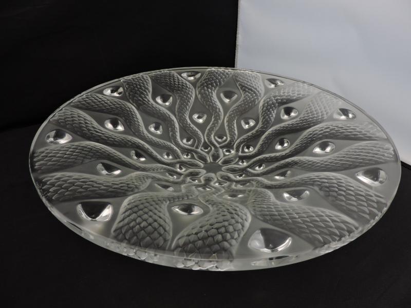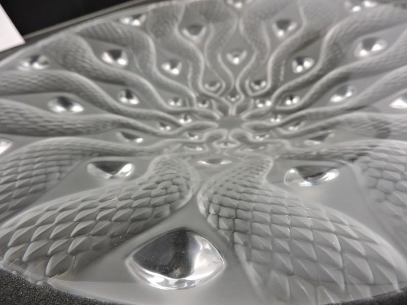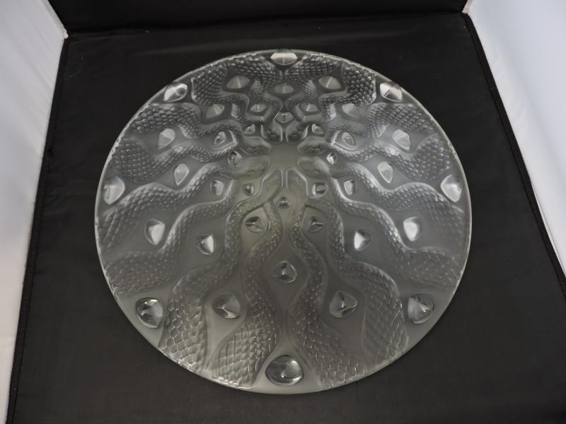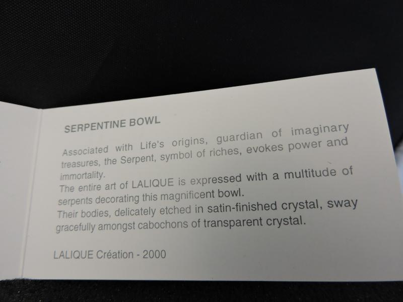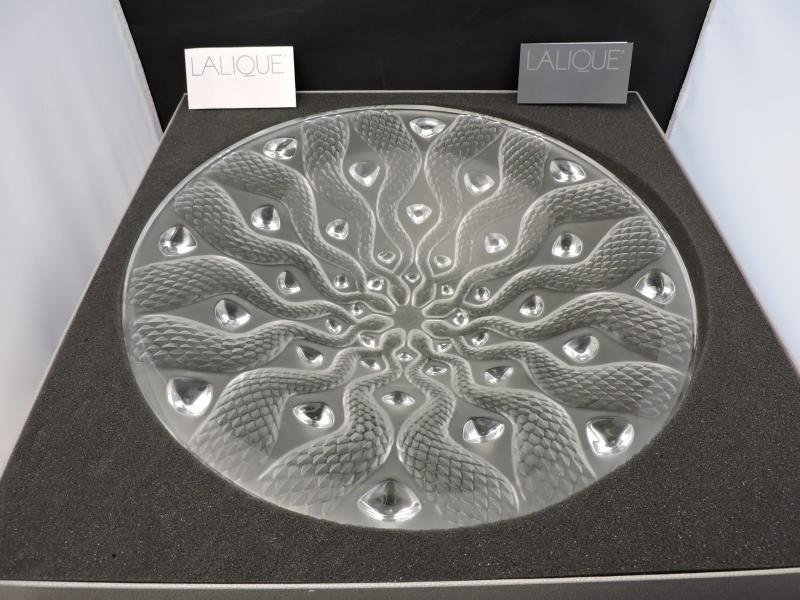 Lalique Serpentine Bowl this is a beautifully detailed piece of Lalique. Limited edition in original box, never displayed only taken out of the box to be photographed. Measurements: The diameter is 15 inches Depth 3 Inches. This item is in perfect mint condition with no damage, no chips, no scratches. A great piece to add to your collection.