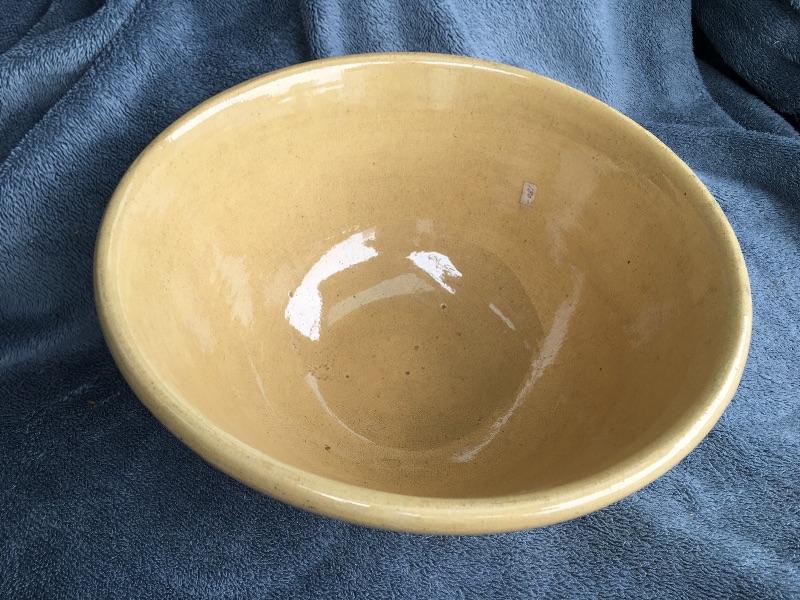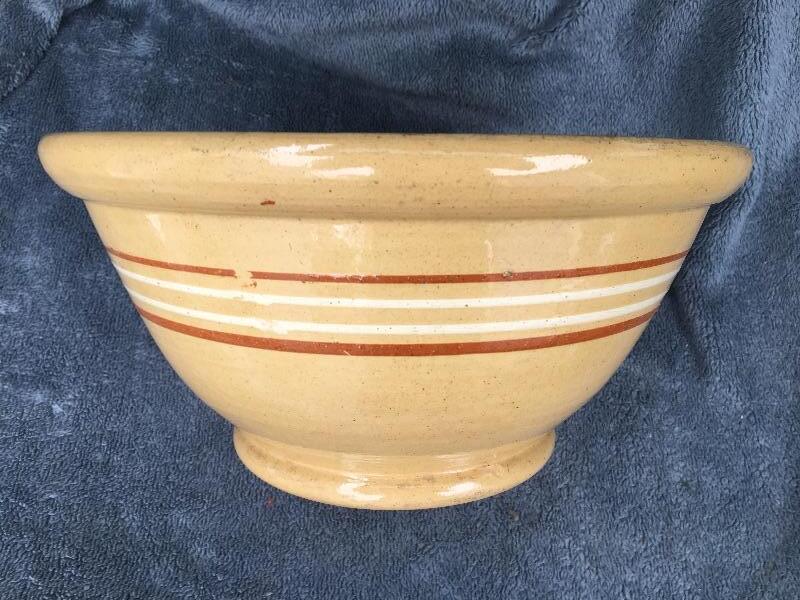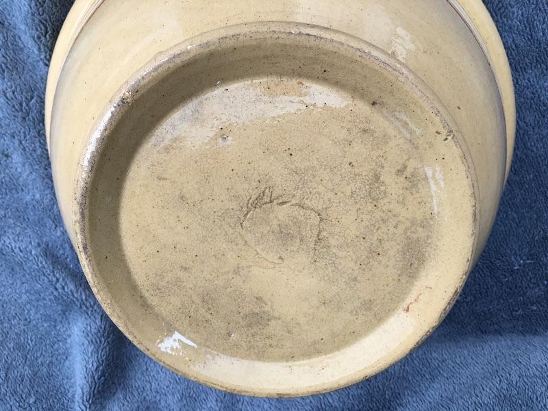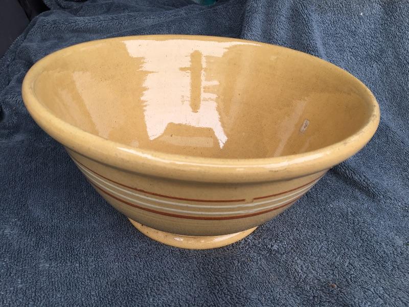Rare Large 15” Antique Yellow Ware Banded Batter Bowl