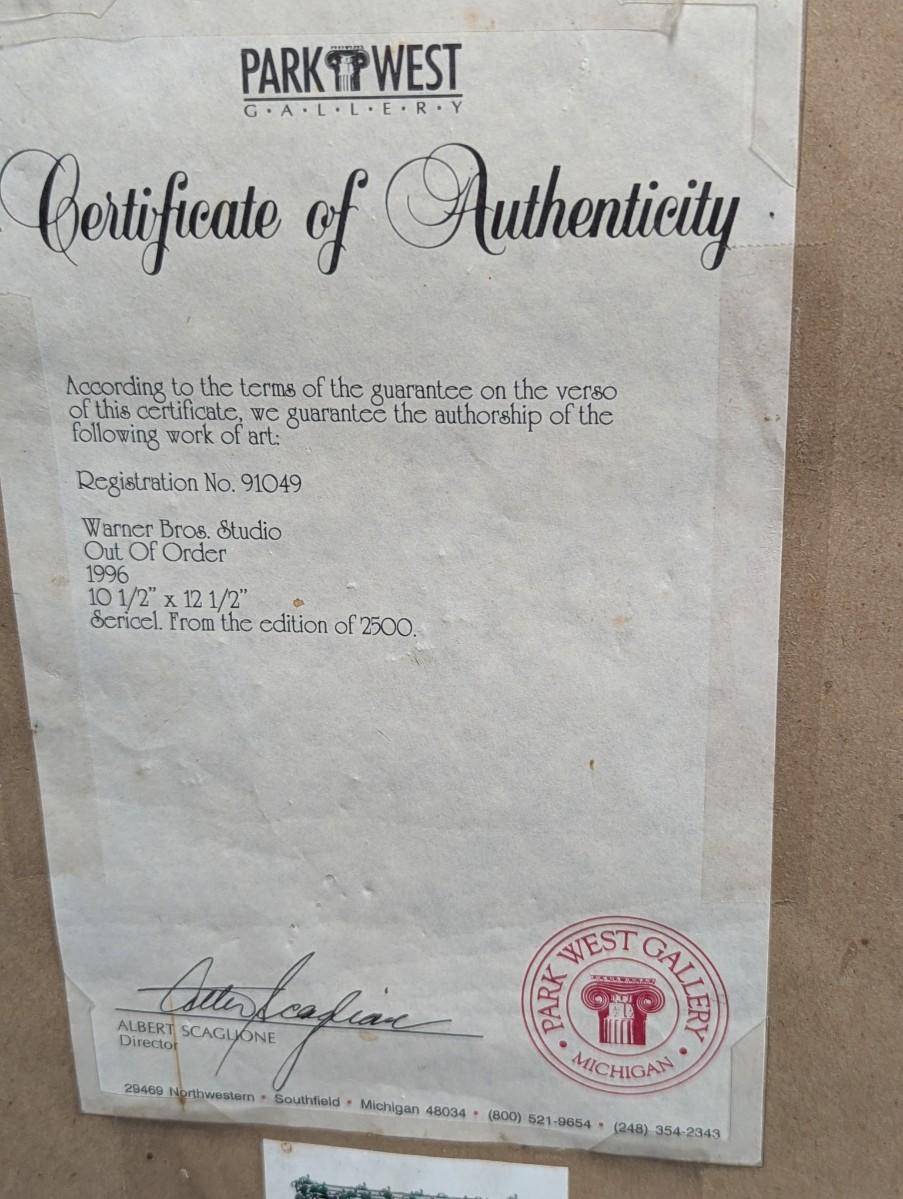 Rare LE Warner Bros. Studio "Out Of Order" 10 1/2" x 12 1/2" w/ COA