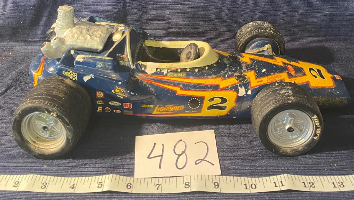 Rare Lionstone Porcelain Race Car Whiskey Decanter