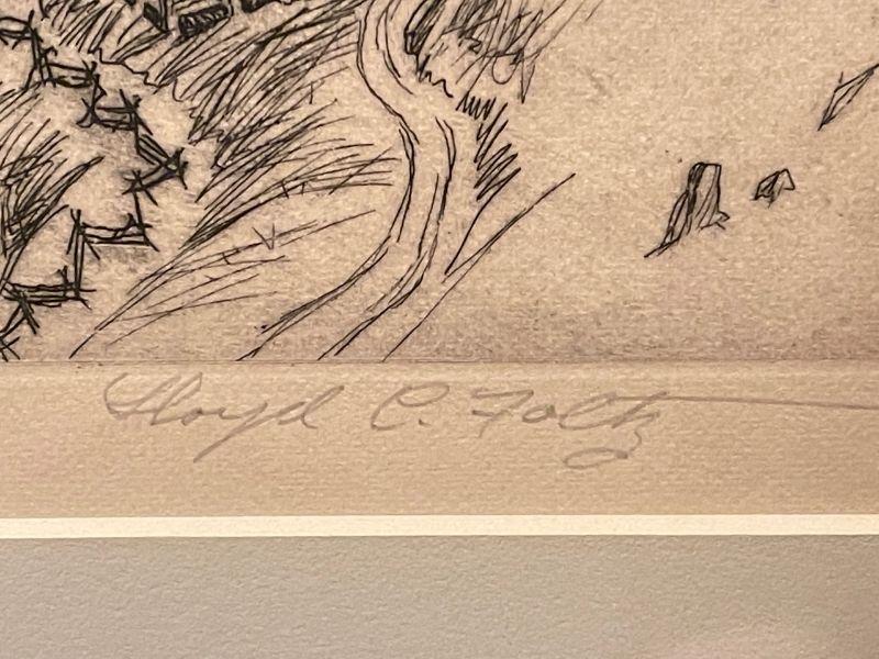 Gift prints were featured for every year, voted on by the Prairie Printmakers committee. The editions were limited and rare to come onto the market. There are two early works in this sale by charter member of this work - Lloyd Foltz.