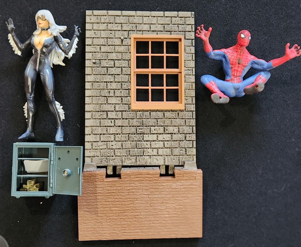 Rare Diamond Select Marvel Spider Man Black Cat Action Figures + Inflateable doll.