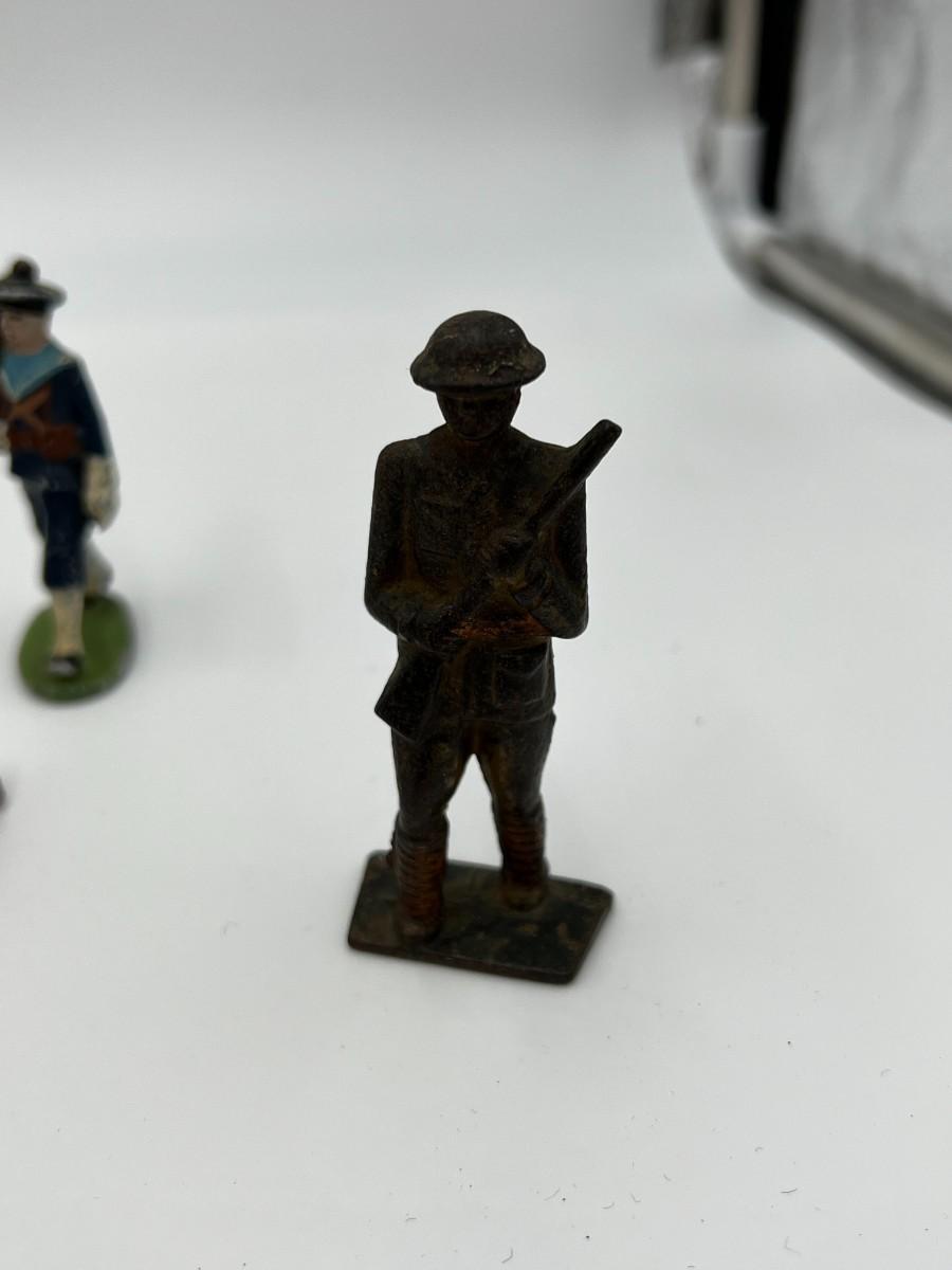 Rare Metal US Soldiers and Cannons Circa 1930s WW1. Includes Barcley Soldiers, Dime Store Soldiers, and cannons. Circa 1930s, with some modeled after WW1. Various styles of soldier. Good condition, as shown.