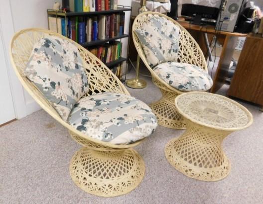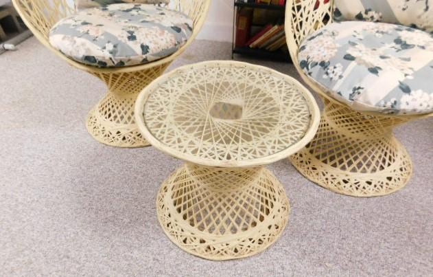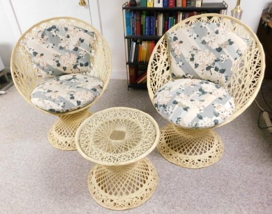 Mid Century Bakelite Lattice Patio Chairs and Table appears to be in great condition. Great find!